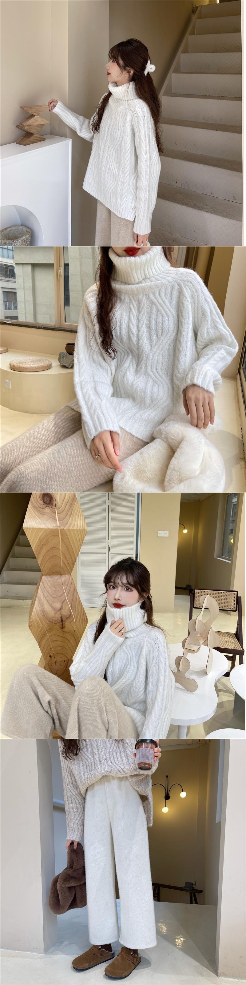 色:ミルクブルーのセーター,暖かいアプリコットセーター,白いセーター,白いズボン,シャンパンパンツ