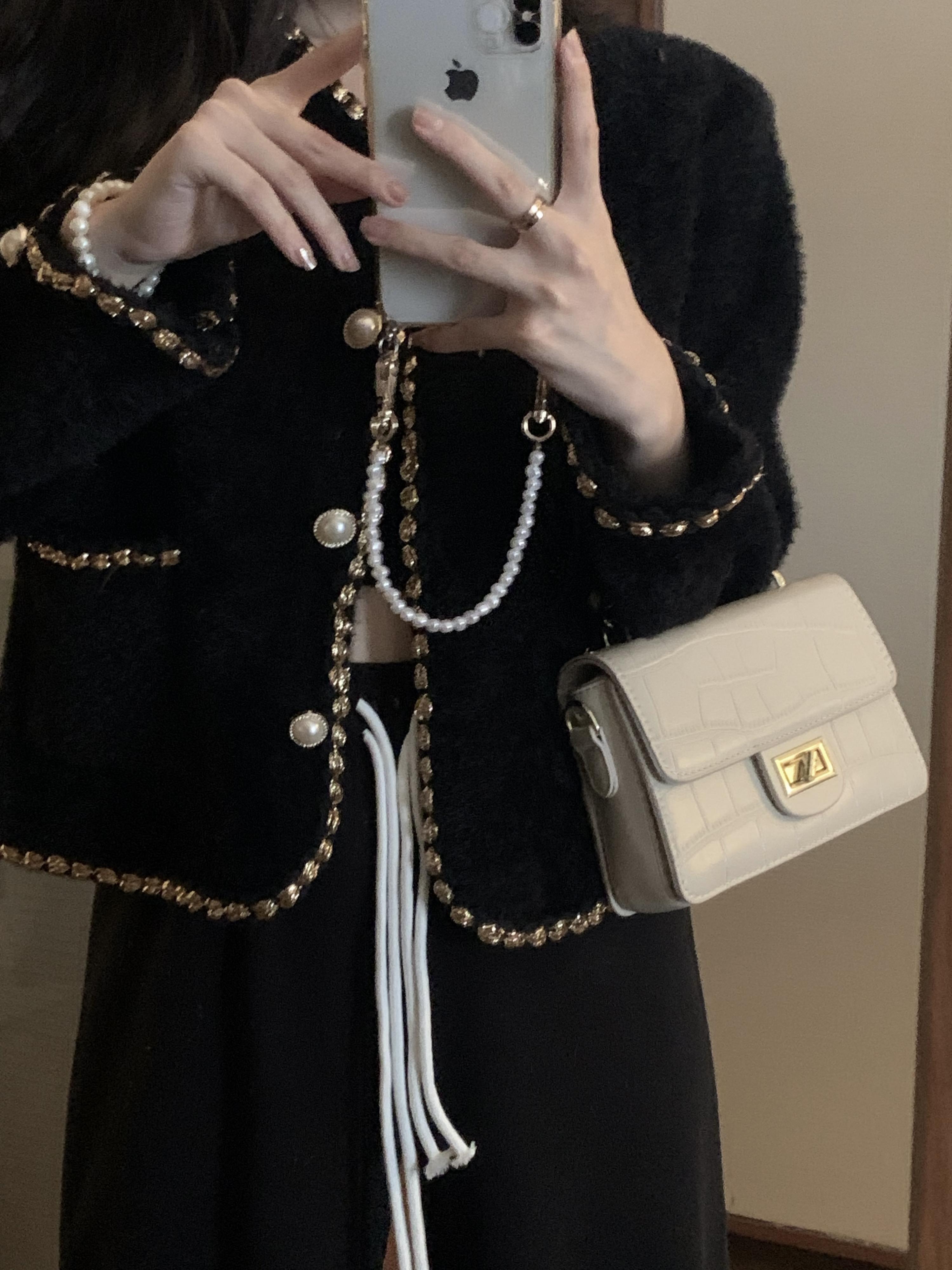 色:黒いジャケット,黒のロングパンツ