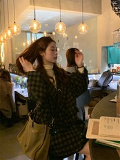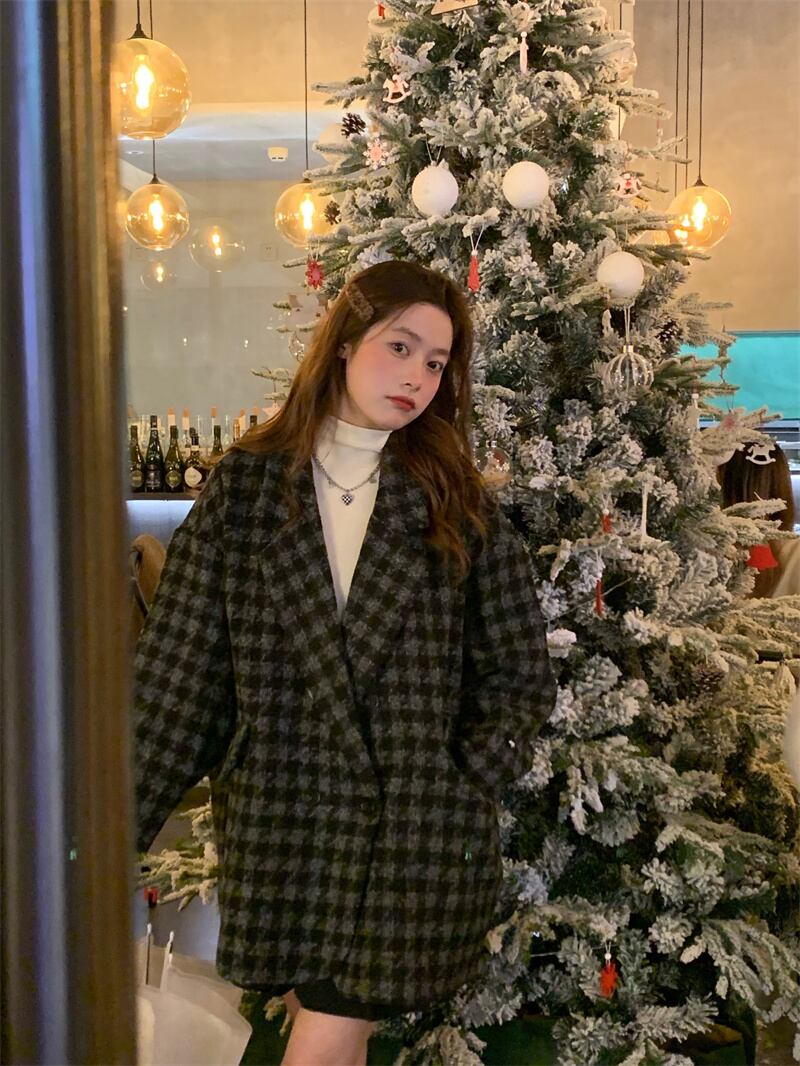 色:千鳥格子ウールコートレギュラー,千鳥格子のウールのコートと綿