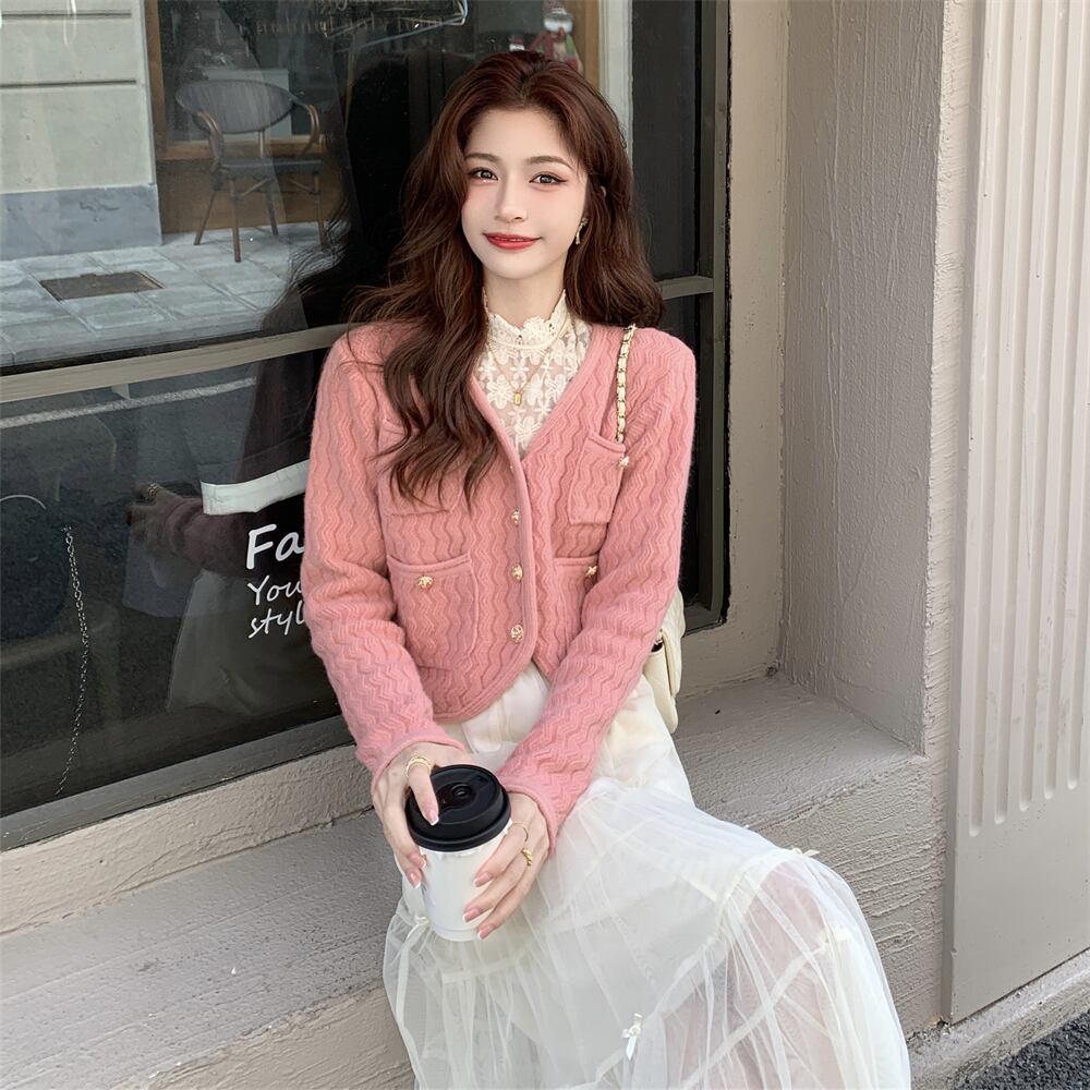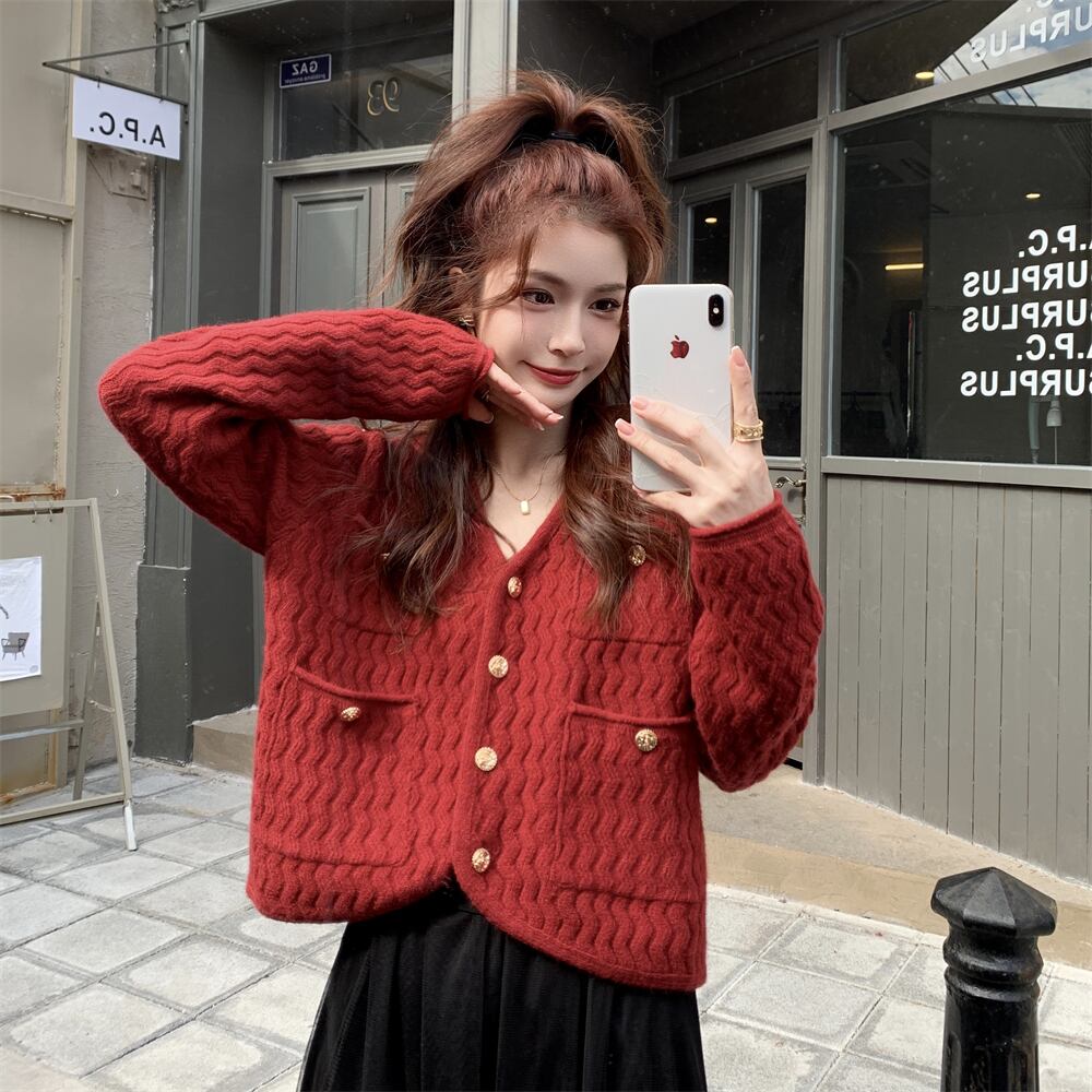 色:赤いセーター,ピンクのセーター,アプリコットスカート,黒スカート