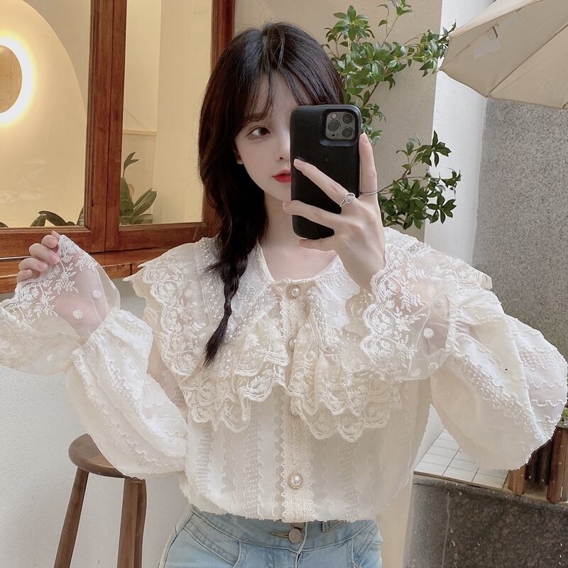 スタンダードスリーブレースシャツ スプリング秋物カラートップス レッド レトロ 大人ガーリー スウィート キュート カジュアル 春物 オータム DOLL14803296314 | pleglad Dorothy