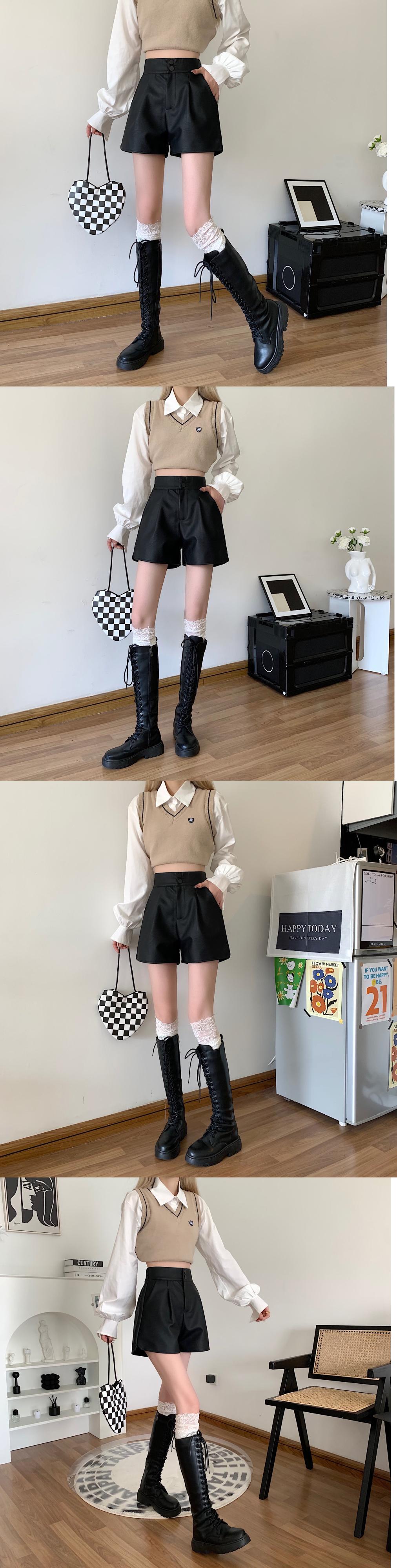 ブラックレザーショーツ 秋物ウィンターブーツパンツ ハイウェスト薄手ルーズNEW 靴 シューズ スプリング 春物 オータム 冬物 ウエスト DOLL95474343422 | pleglad Dorothy