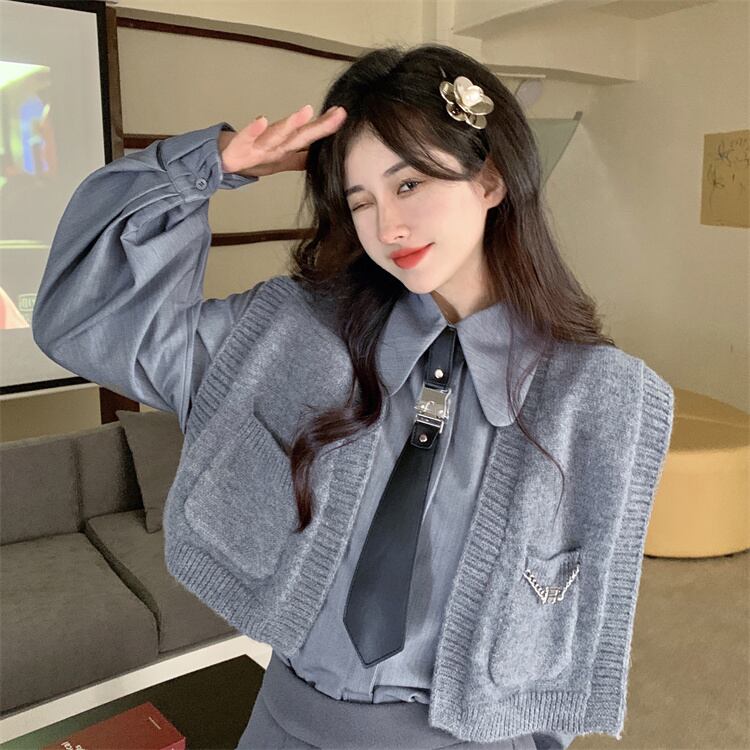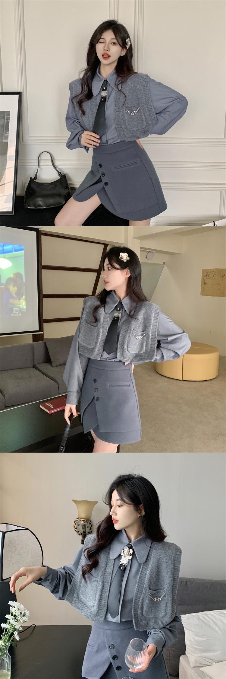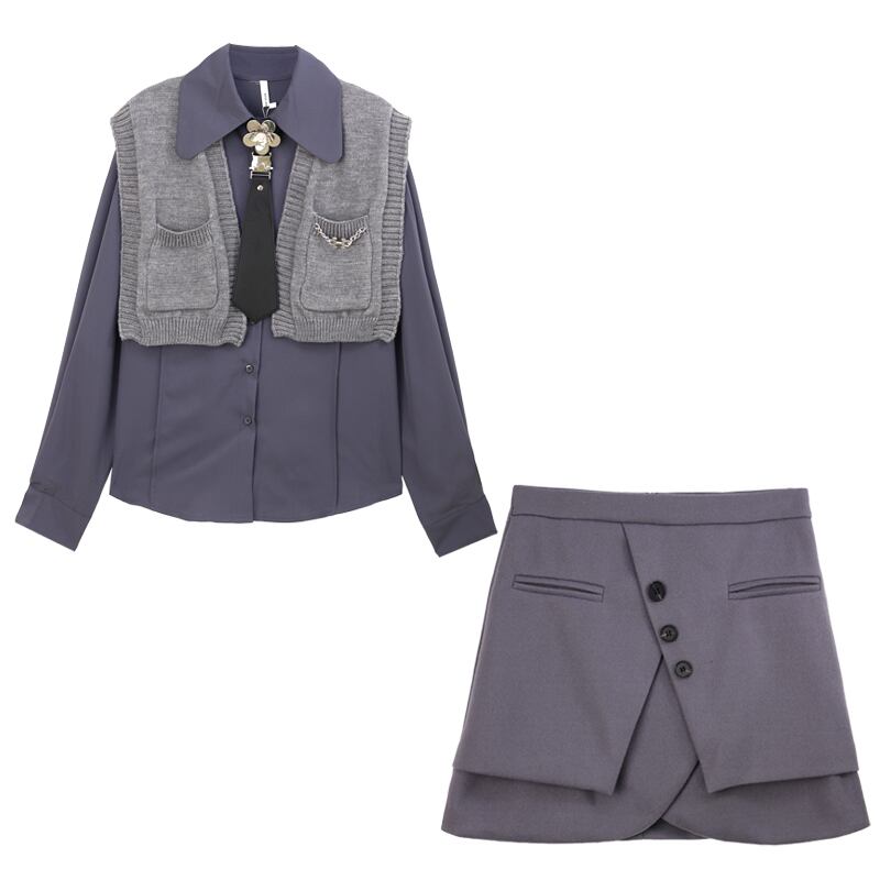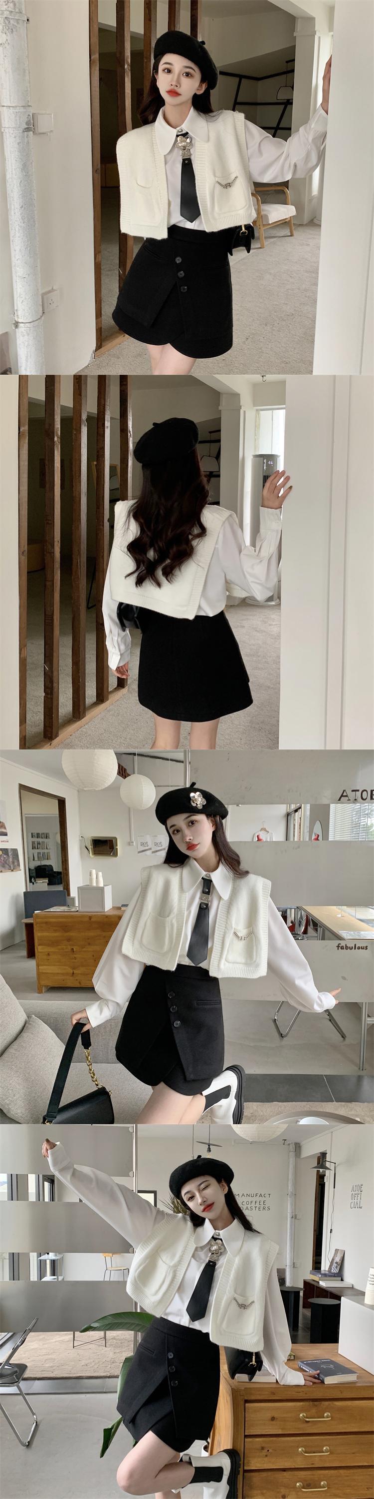 色:グレーのシャツ,白のシャツ,グレーのシャツ+ネクタイ,白のシャツ,グレーのベスト,白いベスト,グレースカート,黒スカート