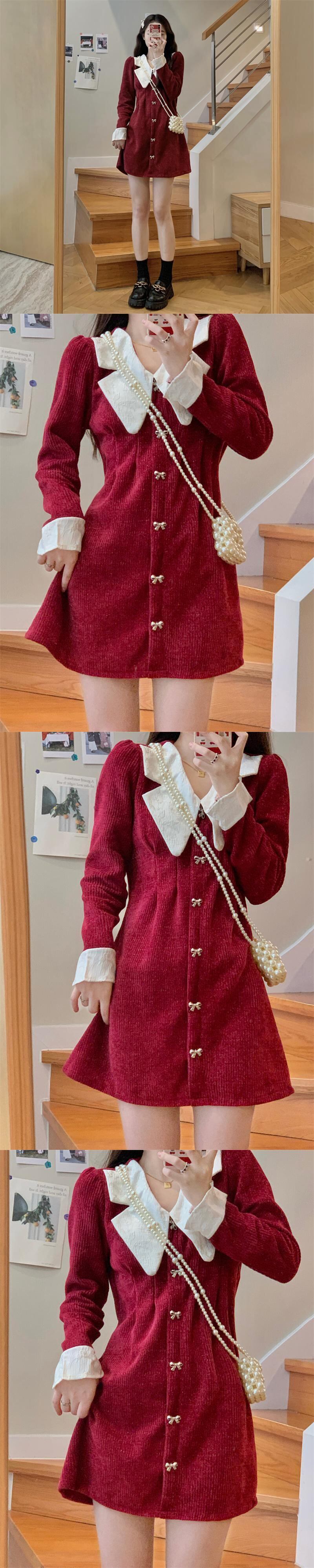 レッドカラーワンピースレディーススプリング秋物ウィンタースタンダードウェストAラインショートスカート レトロ 春物 オータム 冬物 ウエスト DOLL22568518730 | pleglad Dorothy