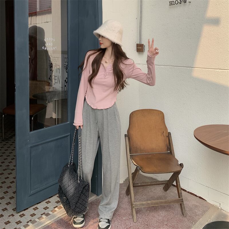 色:グレートップ,ブラックトップ,ピンクトップ,ミディアムグレーパンツ,ダークブラックパンツ