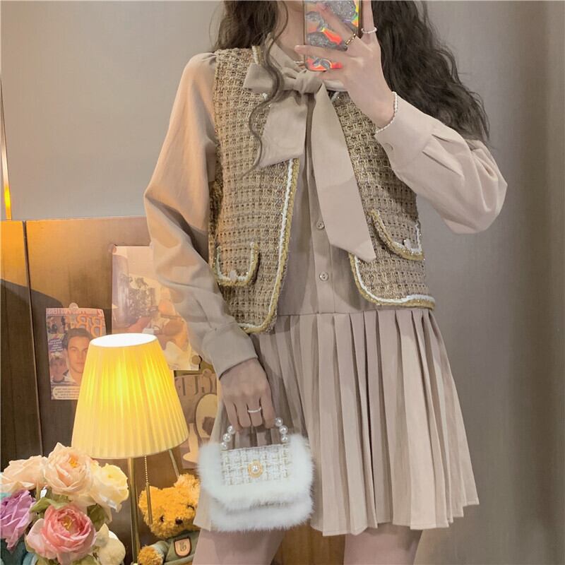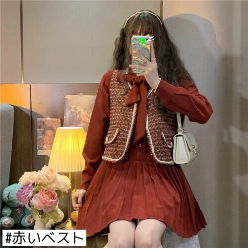 色:赤いベスト,アプリコットベスト,赤いドレス,アプリコットドレス