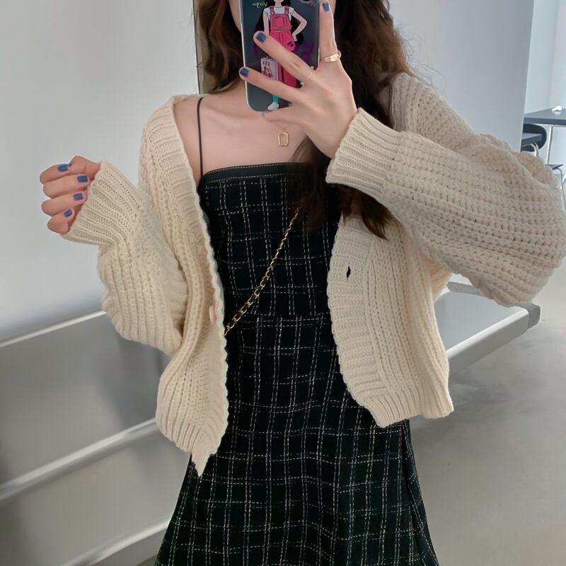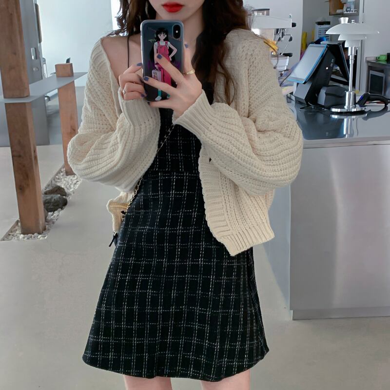 色:アプリコットカーディガン,リトルフレグラントストラップドレス