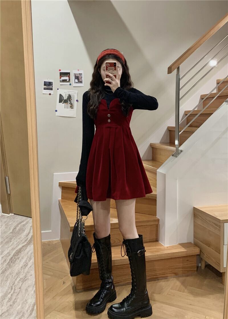 レッド厚みワンピーススプリング秋物スタイルウェスト薄手スカート 大人ガーリー スウィート キュート カジュアル 春物 オータム ウエスト DOLL85357412713 | pleglad Dorothy