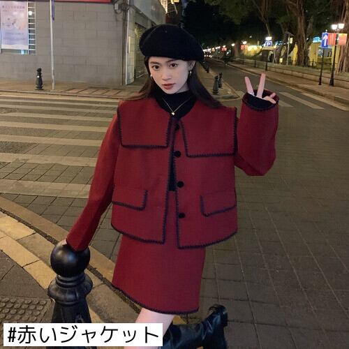 色:黒いジャケット,黒スカート,赤いジャケット,赤いスカート