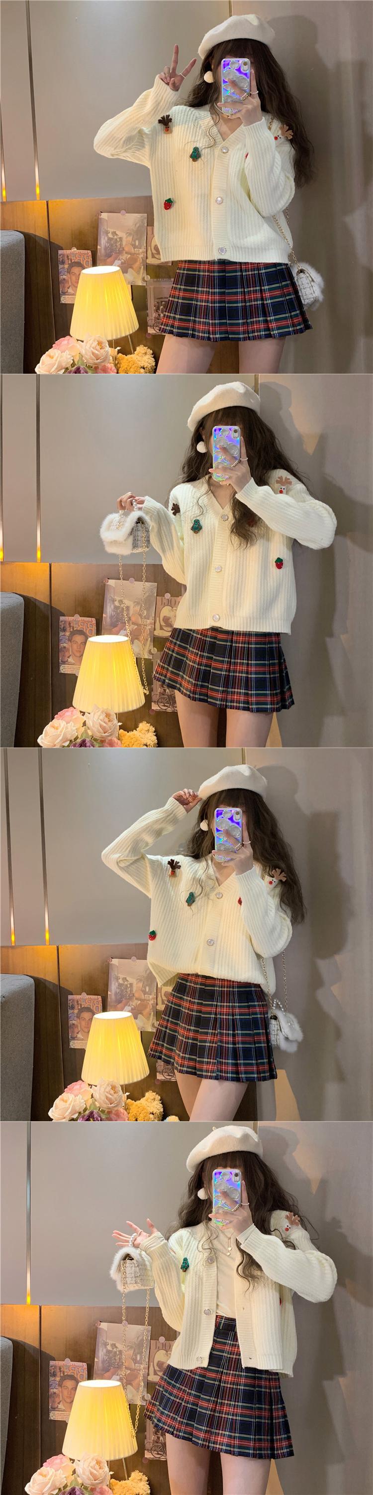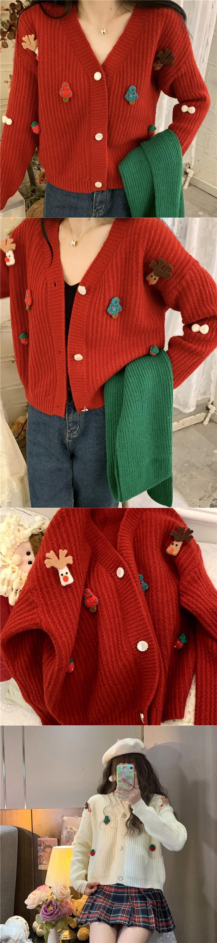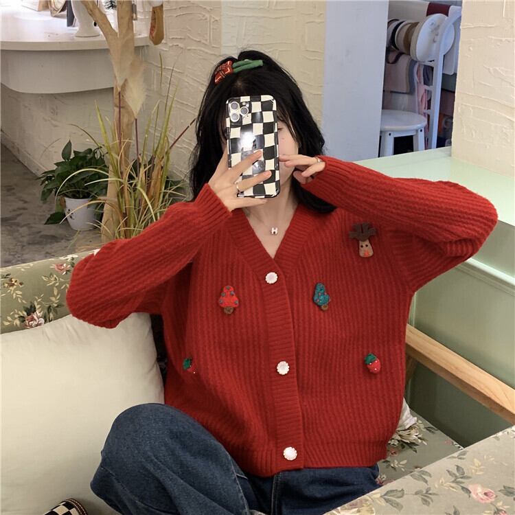 レッドVネックセーター ジャケット スプリング秋物ニットカーディガン 大人ガーリー スウィート キュート カジュアル 春物 オータム DOLL29819765130 | pleglad Dorothy
