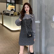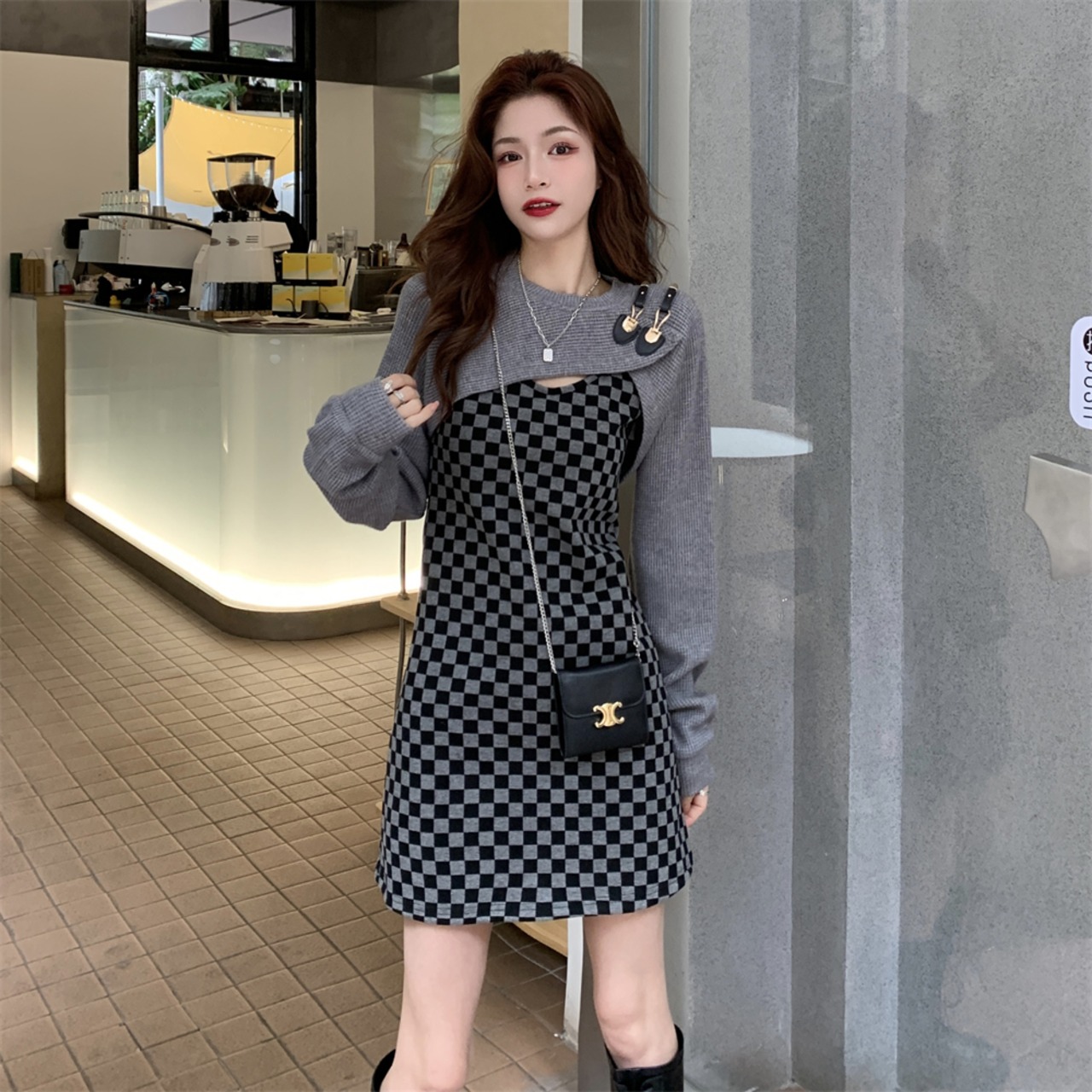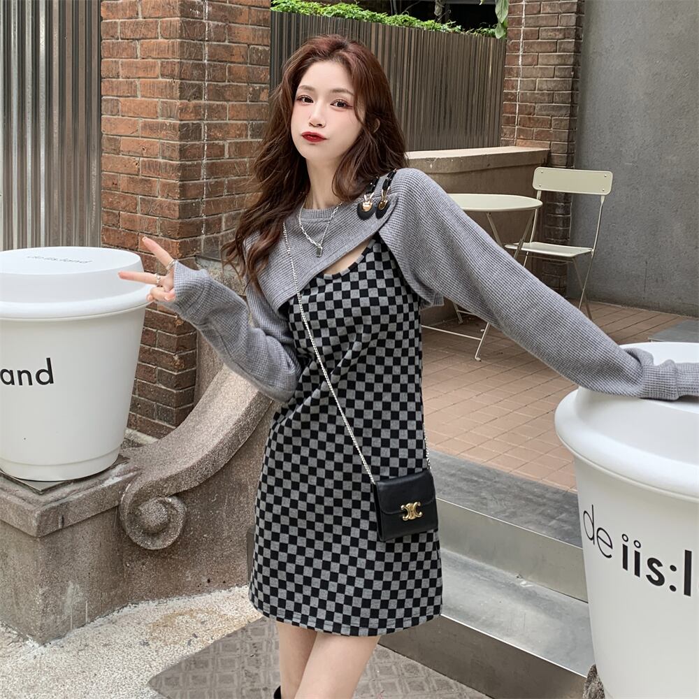 色:チェック柄スカート,グレーブラウス