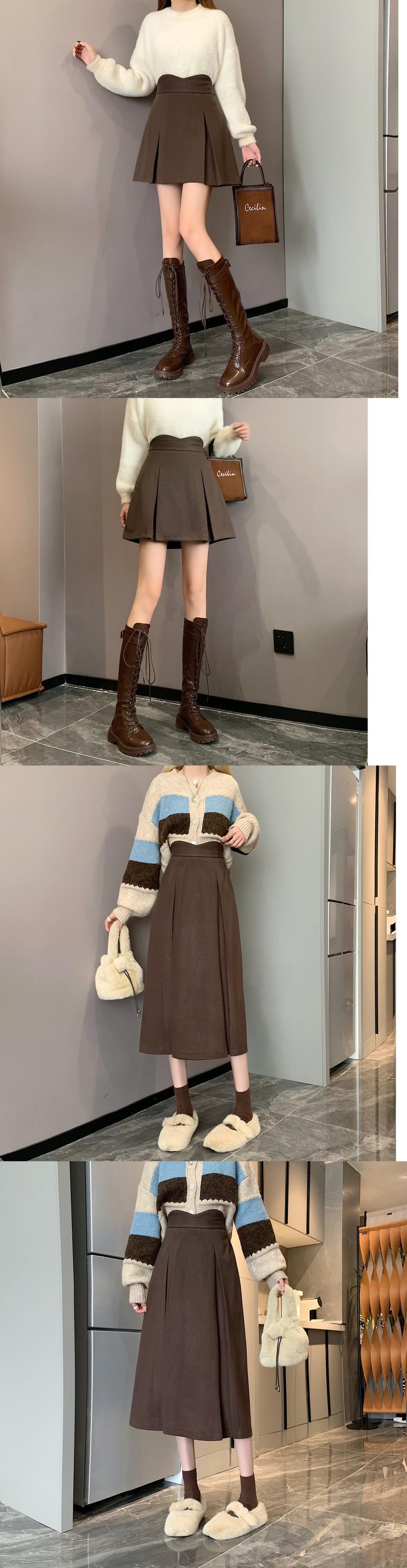 色:ブラウンミドル丈スカート,ブラックショート,アプリコットミディスカート,アプリコットショート,コーヒー色ショート,ブラックミディスカート