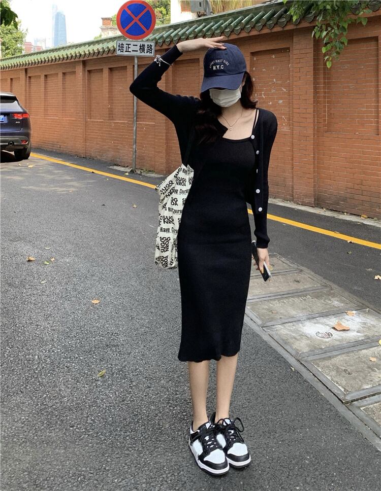 色:カーディガンブラック,カーディガンカーキ,スカート黒,スリングスカートカーキ