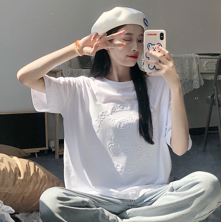 色:白の立体レリーフベアT