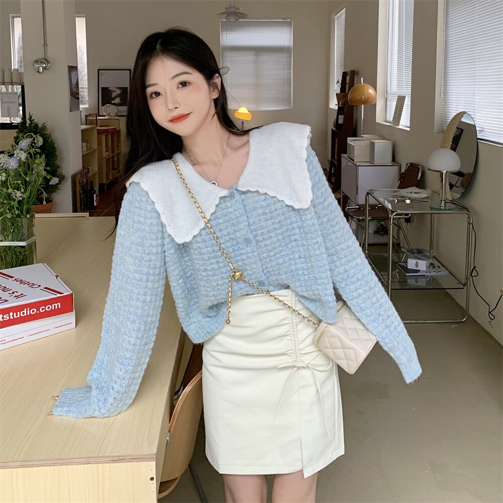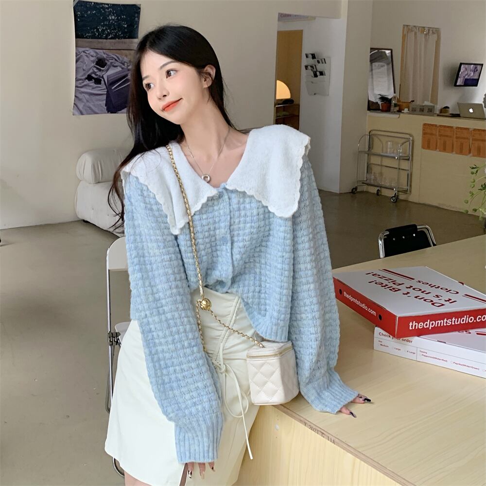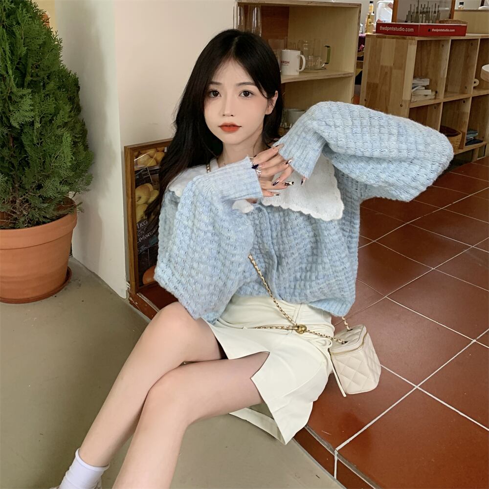 ブルーセーター コート スプリング秋物韓国ファッションスタイルニットトップス 大人ガーリー スウィート キュート カジュアル 春物 オータム DOLL49212246978 | pleglad Dorothy