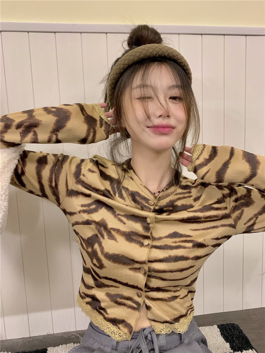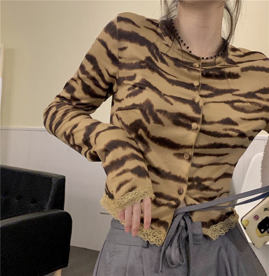 レオパードプリント柄長袖スリーブTシャツシャツ スプリングゆったりショートトップス ロング 大人ガーリー スウィート キュート カジュアル 春物 DOLL66105397042 | pleglad Dorothy