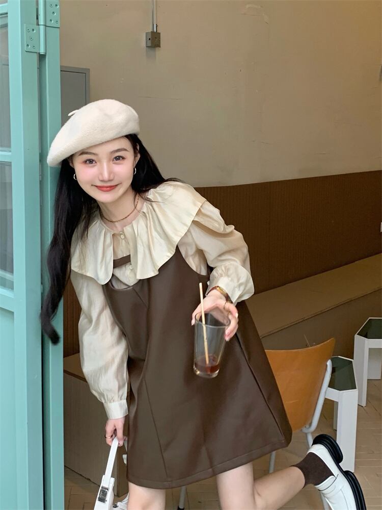 色:茶色のドレス,アプリコットシャツ