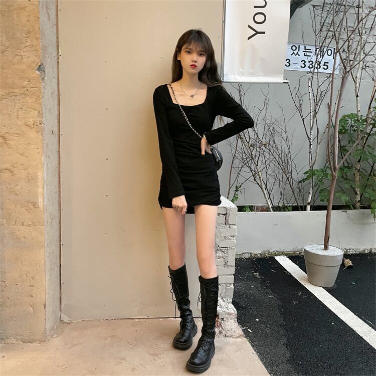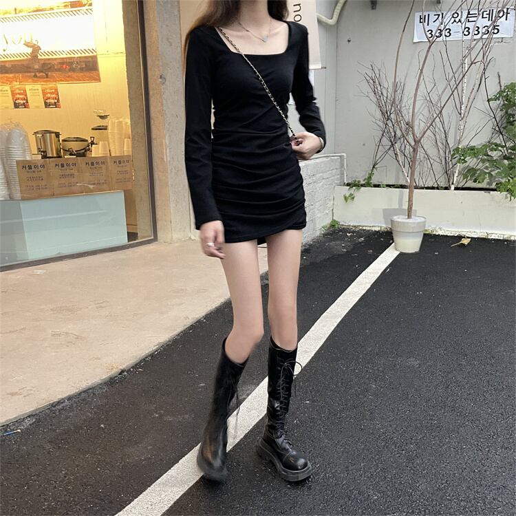 ブラックワンピーススプリング秋物スタイルスリムスカート ロング 大人ガーリー スウィート キュート カジュアル 春物 オータム スリムヒップ スクウェア 長袖 DOLL76580872587 | pleglad Dorothy