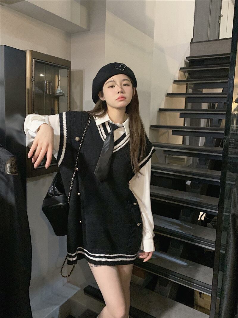 色:ネクタイ付きシャツ,黒のベスト