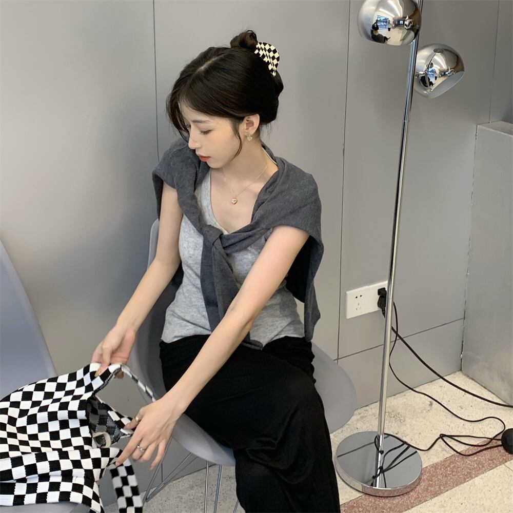 色:ダークグレーの長袖,ライトグレーのベスト,青い長袖,白いベスト