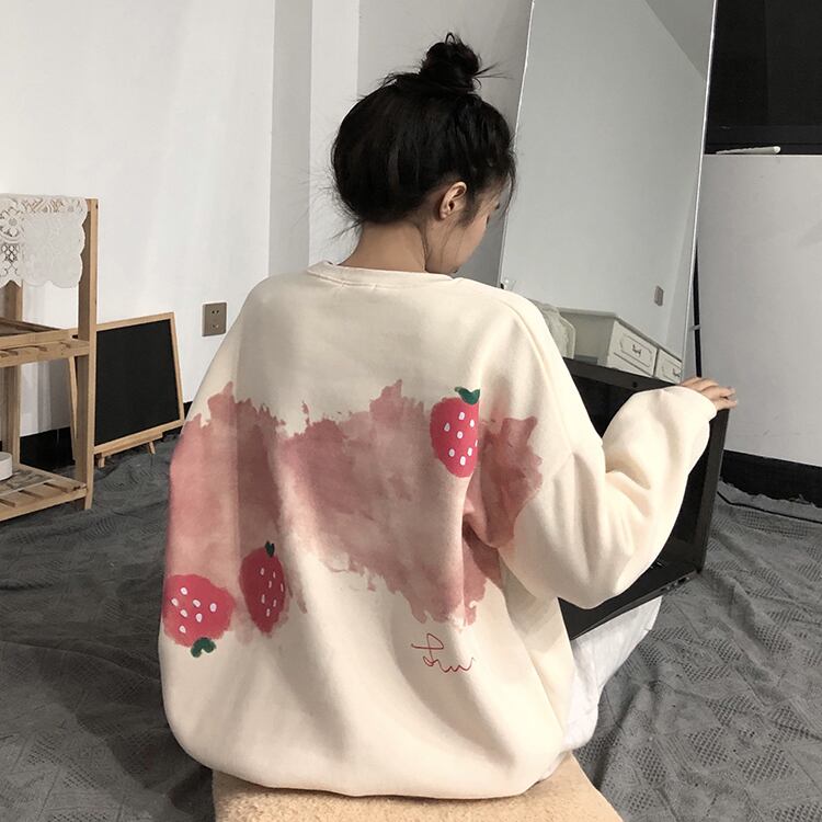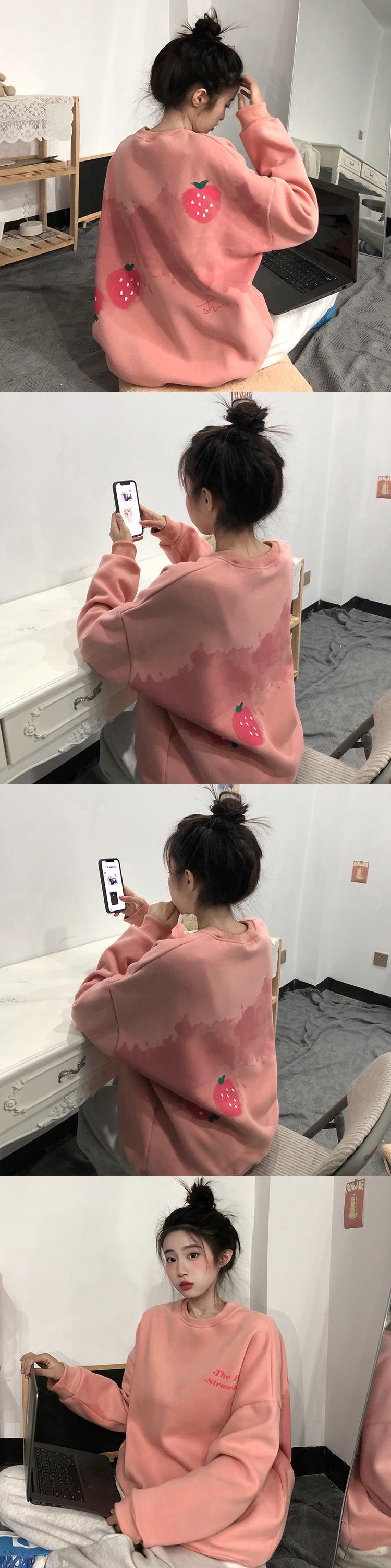色:アプリコットバックストロベリースウェットシャツ,ピンクバックストロベリースウェットシャツ