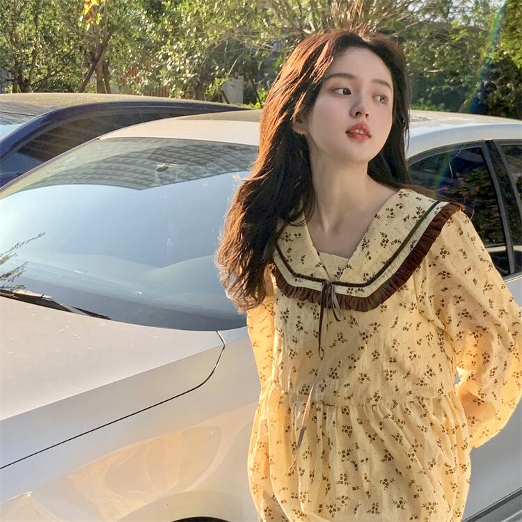 ネイビーカラーフローラルワンピースレディーススプリング秋物ロングスカート 大人ガーリー スウィート キュート カジュアル 春物 オータム 花柄 DOLL41453015907 | pleglad Dorothy