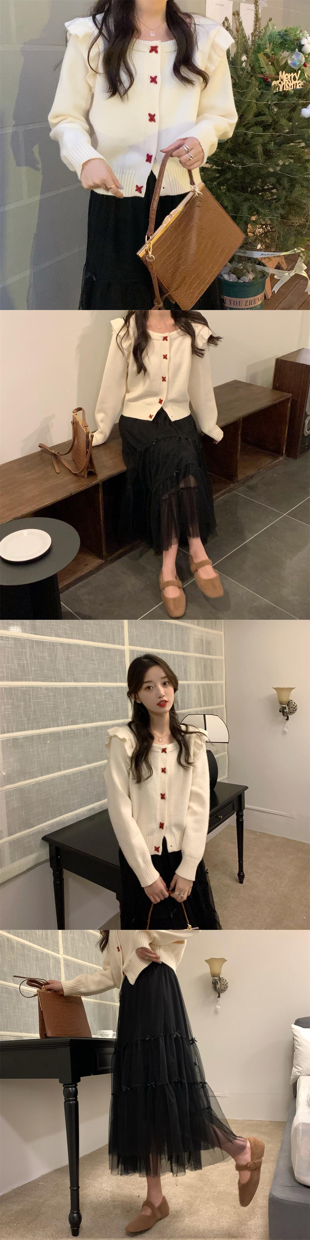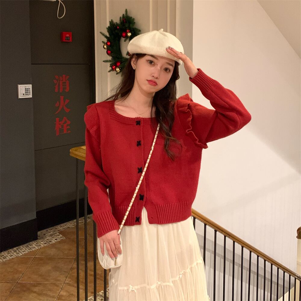 色:ブラックレーススカート,白いレースのドレス,赤いセーター,白いセーター