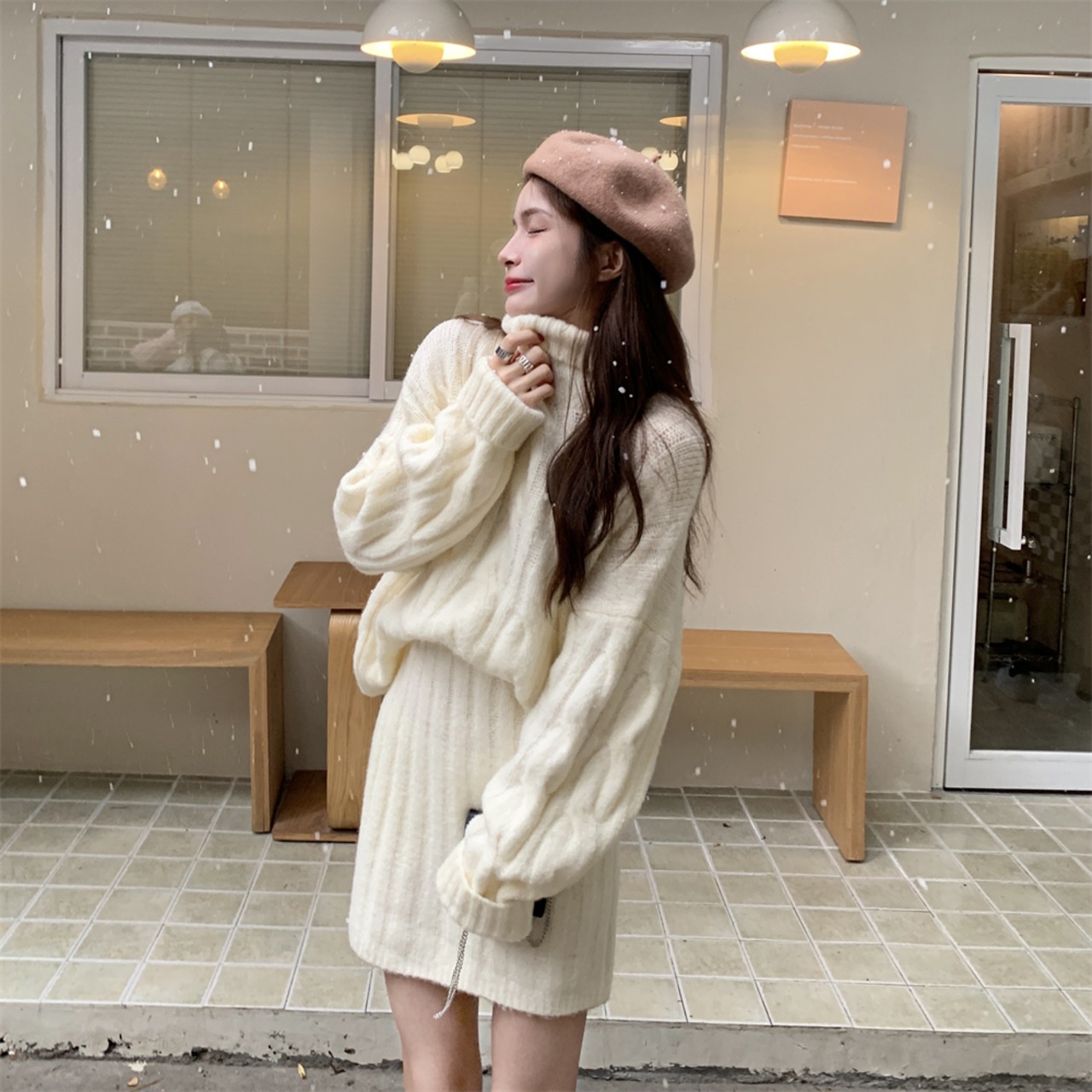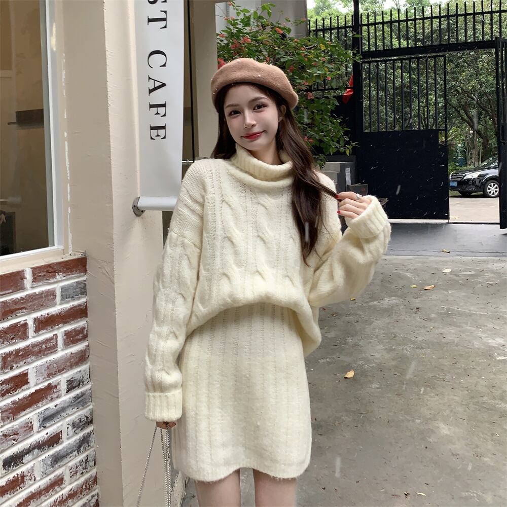 色:茶色のセーター,茶色のスカート,白いセーター,白いスカート