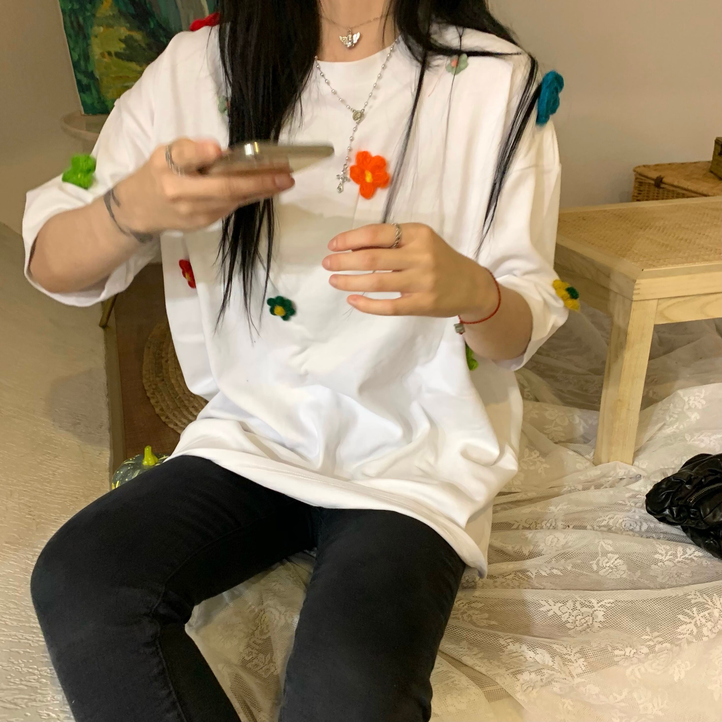海外製のため縫製があまい箇所、色移り 人の手によって測っているためサイズに若干の誤差がある場合がございます。