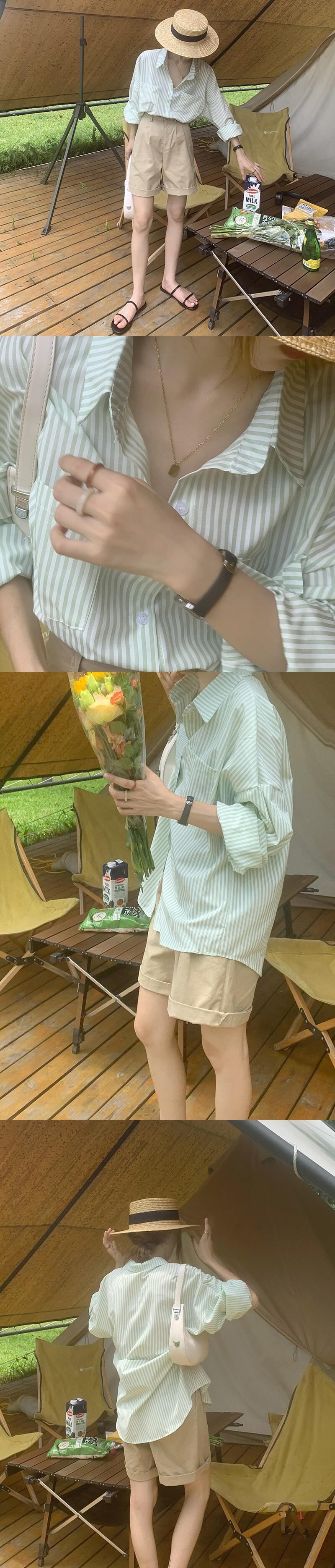 色:緑のストライプのシャツ