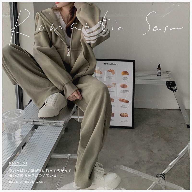 色:モスグレースウェットシャツ,モスグレーパンツ