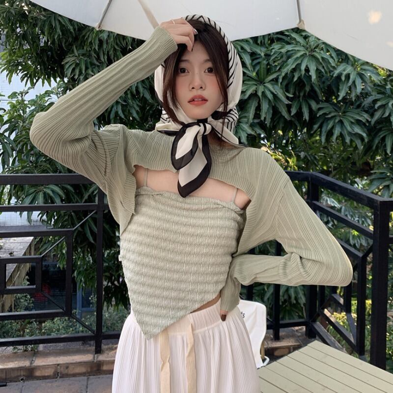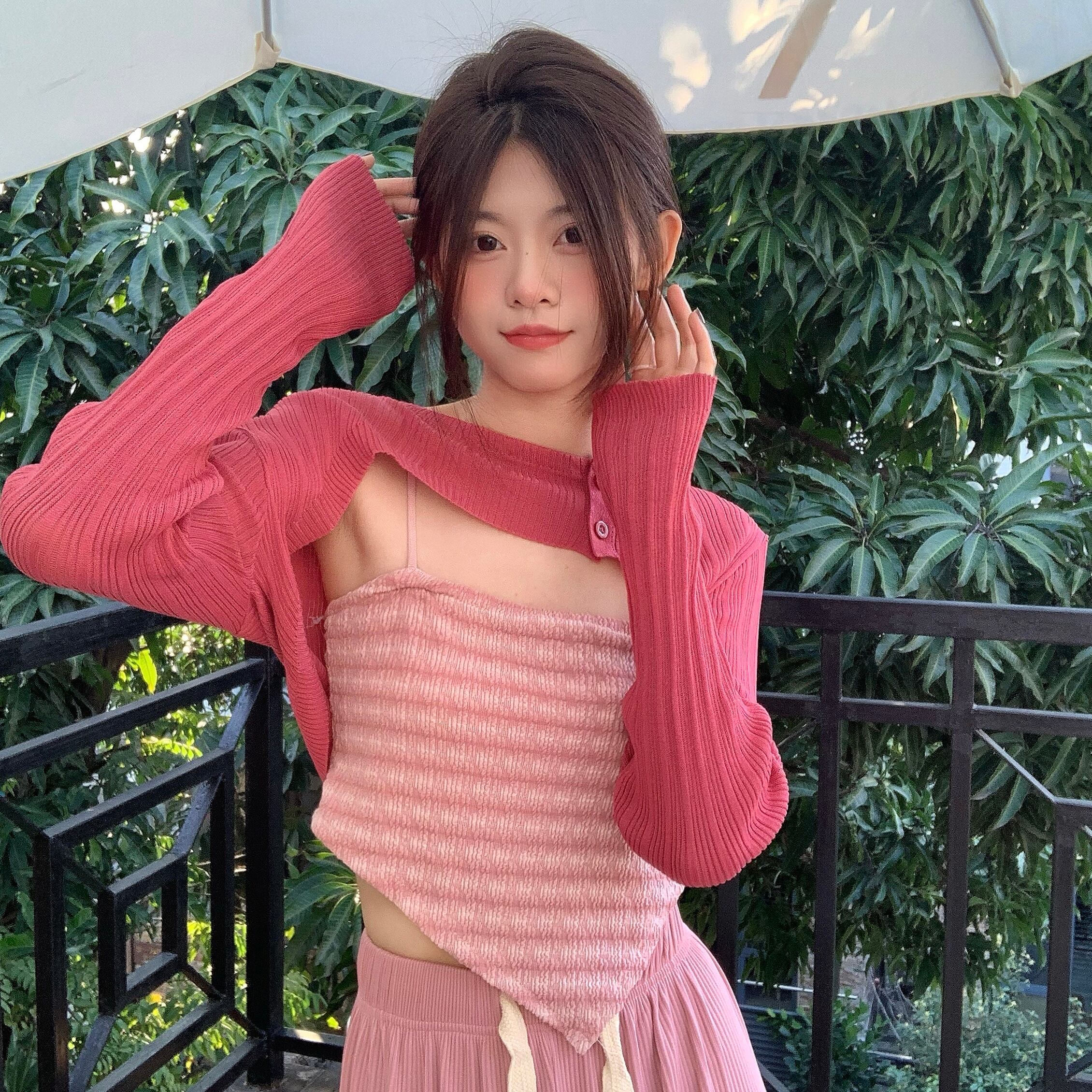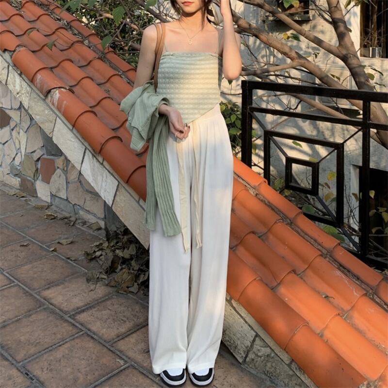 色:緑のサスペンダー+ブラウス,黒のサスペンダー+ブラウス,ピンクのスリング+ブラウス,黒いズボン,ピンクのズボン,アプリコットズボン