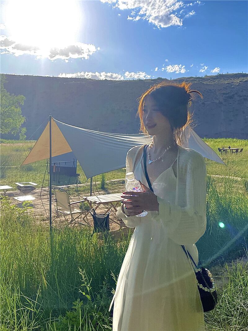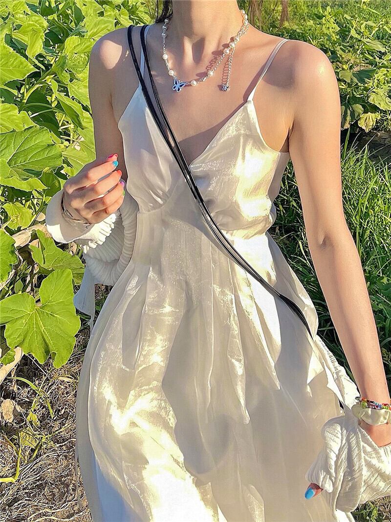 ホワイトVネックワンピースレディーススプリング夏服韓国ファッションスタイルスカート 大人ガーリー スウィート キュート カジュアル 春物 夏物 DOLL87193120326 | pleglad Dorothy