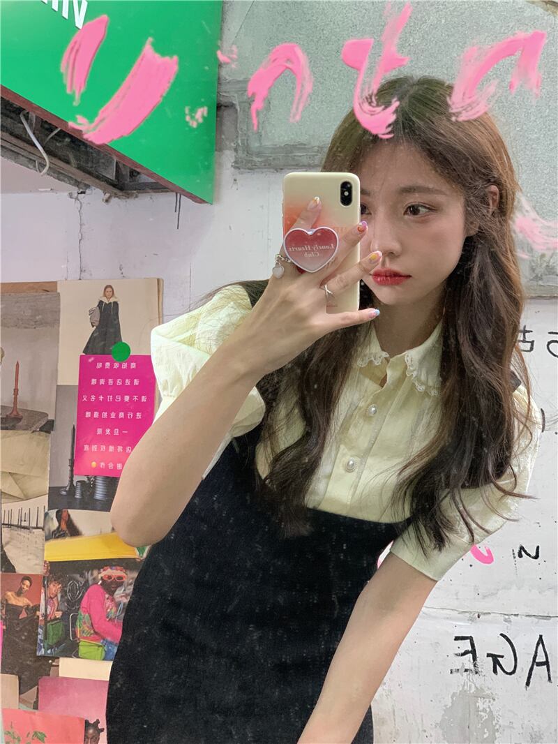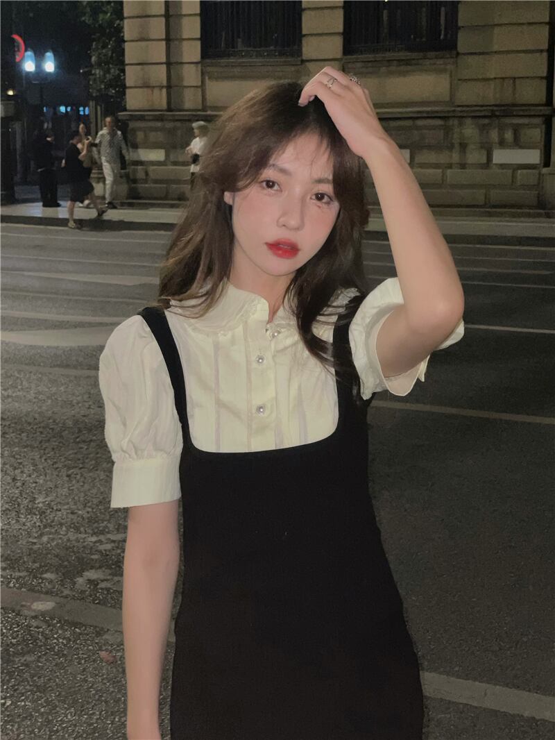 色:ミルキーアプリコットシャツ,ブラックサスペンダースカート