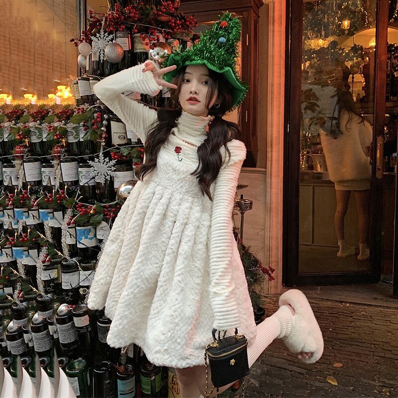 色:クリームホワイトのサスペンダースカート,もち米ホワイトトップ