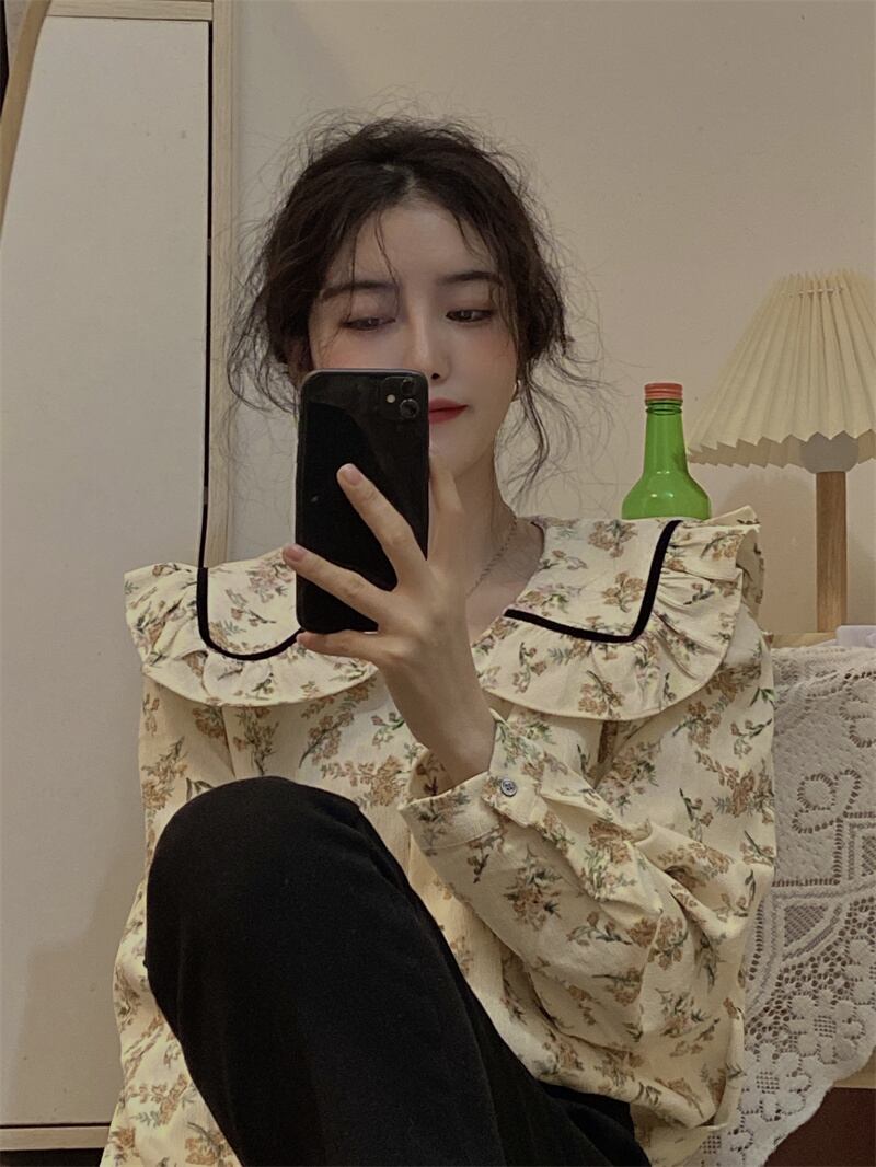 カラーフローラルシャツ スプリング秋物スタンダードトップス ロング レトロ 大人ガーリー スウィート キュート カジュアル 春物 オータム 花柄 長袖 DOLL59778413116 | pleglad Dorothy