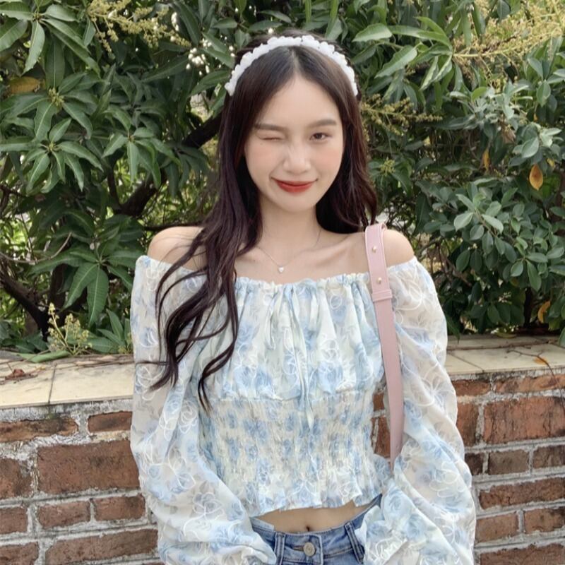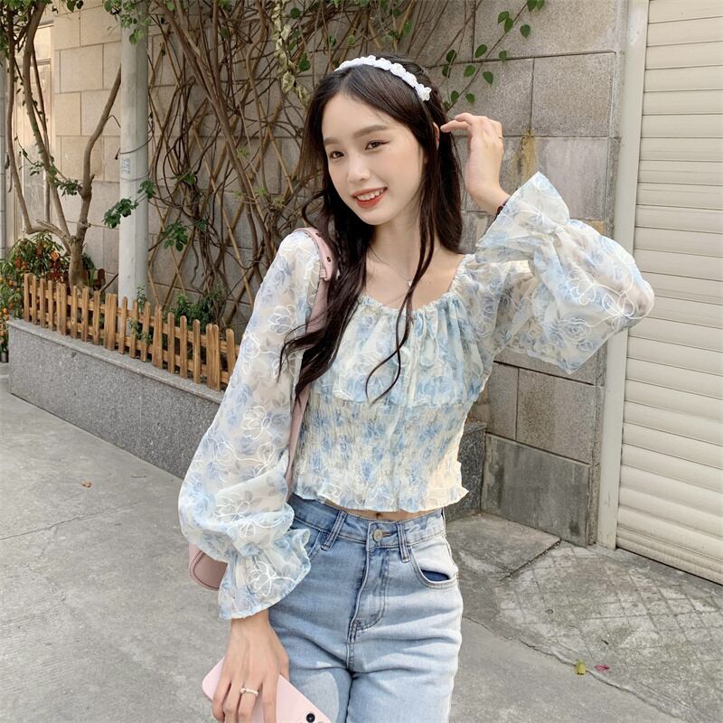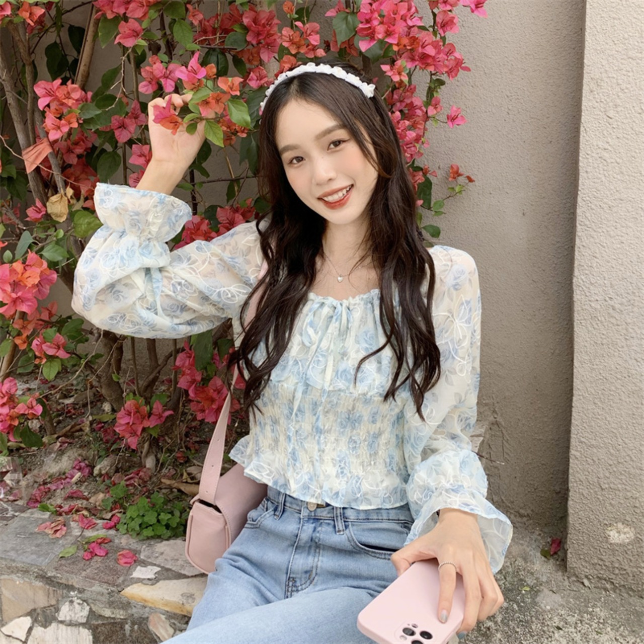 カラーウェストシャツ スプリング秋物スタイル薄手フローラルショートトップス ロング 長袖 春物 オータム 花柄 スクウェア ウエスト DOLL37018534681 | pleglad Dorothy