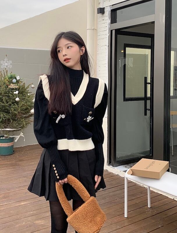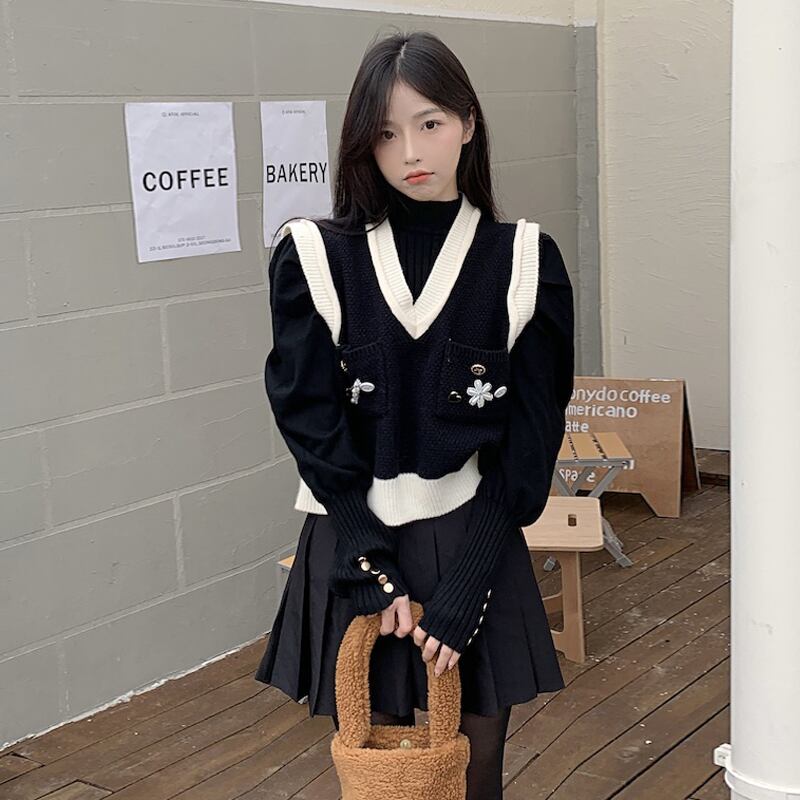 色:黒のベスト,白いベスト,パフスリーブボトミング