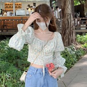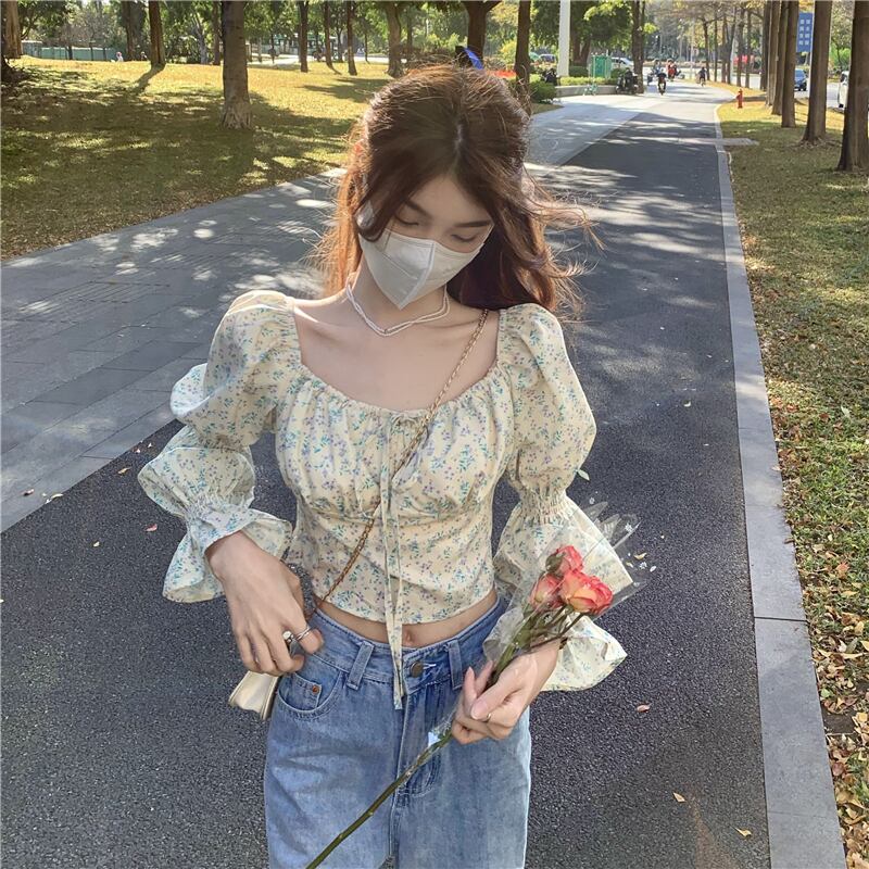 フローラルスリーブシャツ スプリング秋物ウェストショートトップス 大人ガーリー スウィート キュート カジュアル 春物 オータム 花柄 ウエスト DOLL3959087414 | pleglad Dorothy