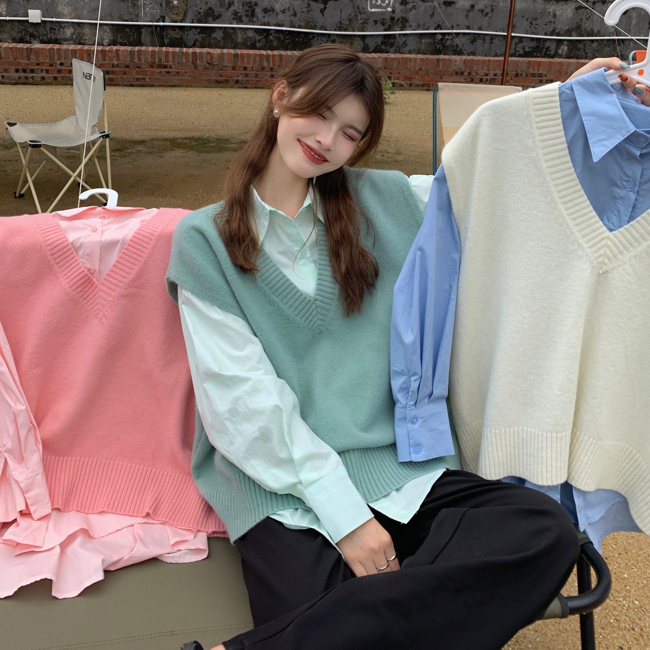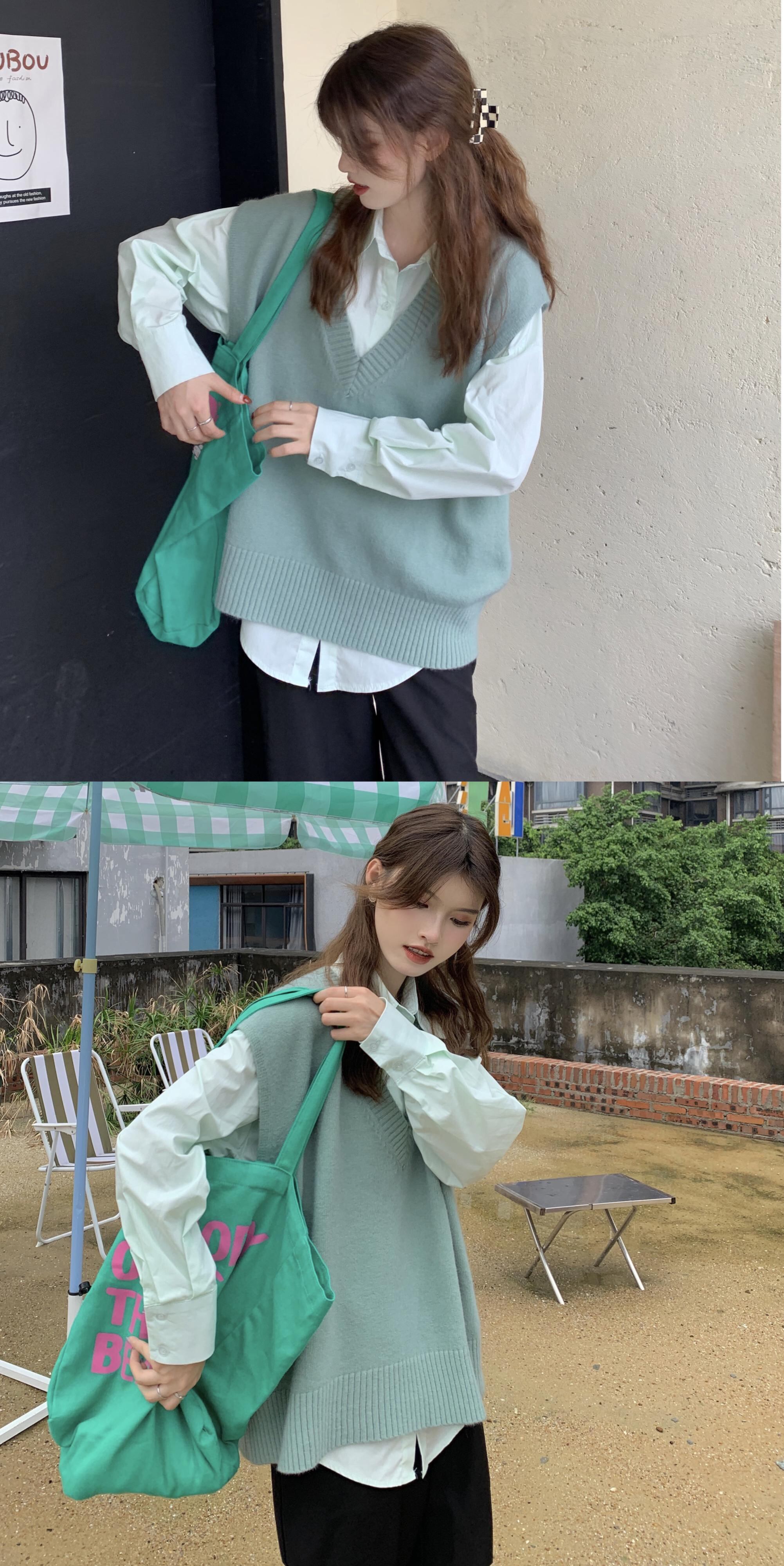 色:ミントグリーンのシャツ,ピンクのシャツ,青いシャツ,アプリコットベスト,ピンクのベスト,グリーンベスト