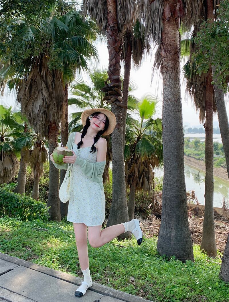色:緑の花柄のドレス,ピンクの花柄ドレス,グリーンカーディガン,ピンクのカーディガン