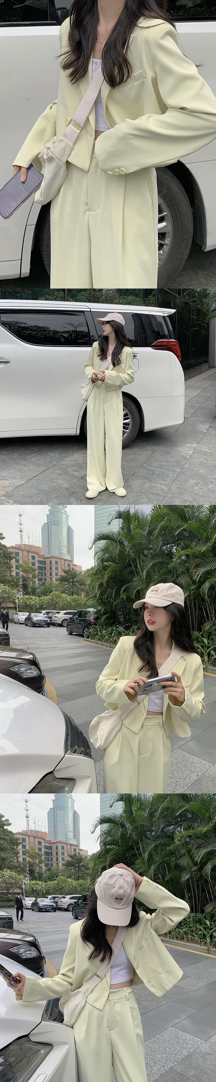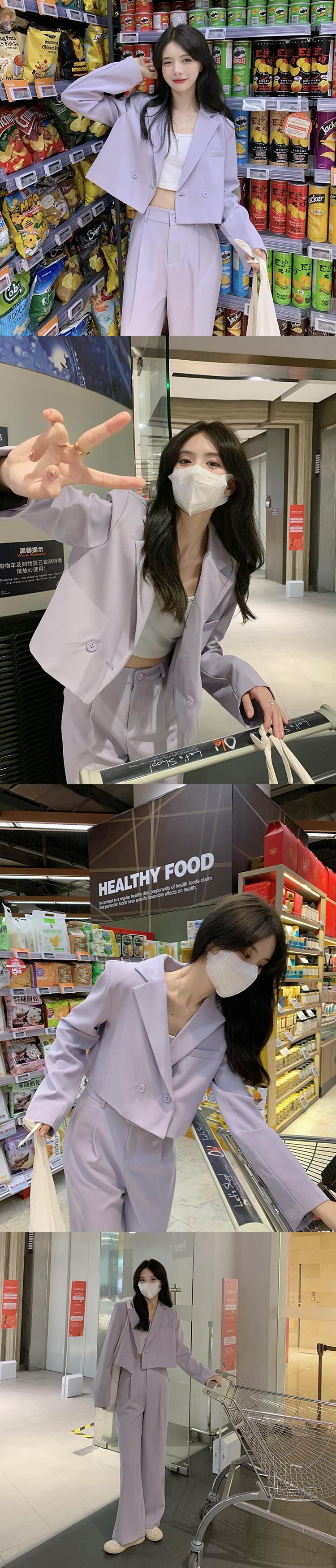 色:ショートベージュスーツ,短い黒のスーツ,短い黄色のスーツ,短い紫色のスーツ,ロングベージュスーツ,長い黒のスーツ,長い黄色のスーツ,長い紫色のスーツ,白いズボン,黒いズボン,黄色のズボン,パープルパンツ