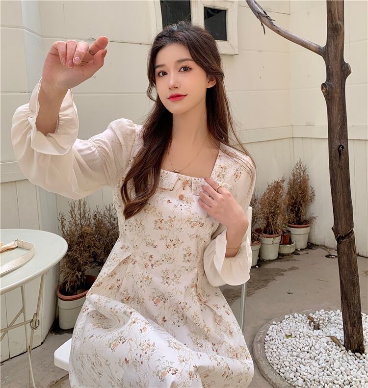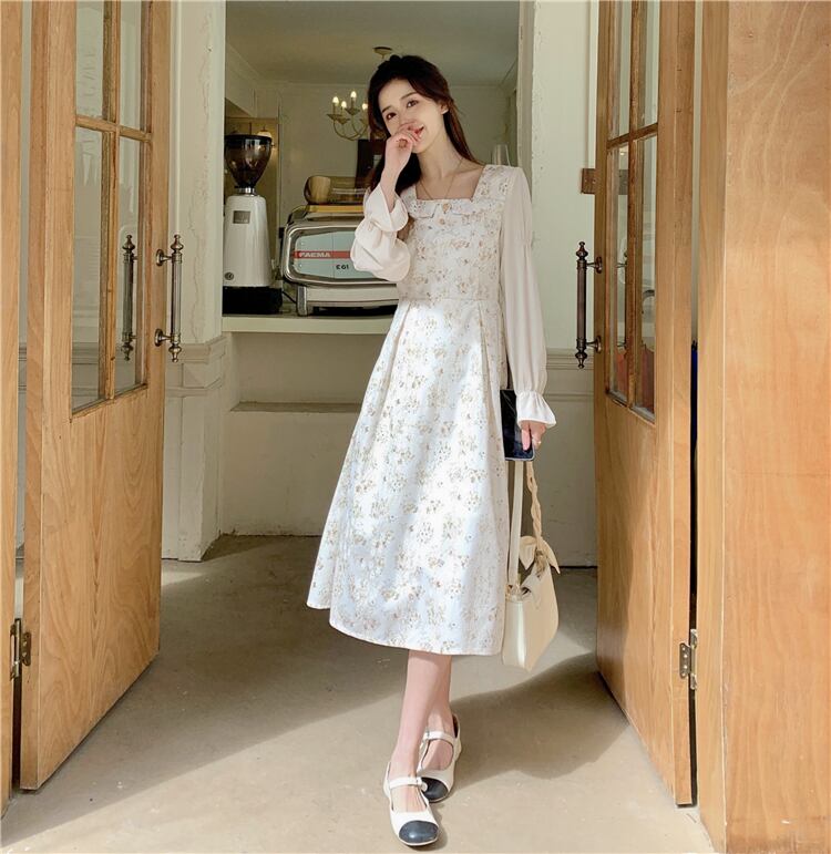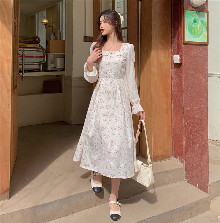 フローラルワンピースレディーススプリングスタイルロングスカート 大人ガーリー スウィート キュート カジュアル 春物 花柄 スクウェア DOLL16115063320 | pleglad Dorothy