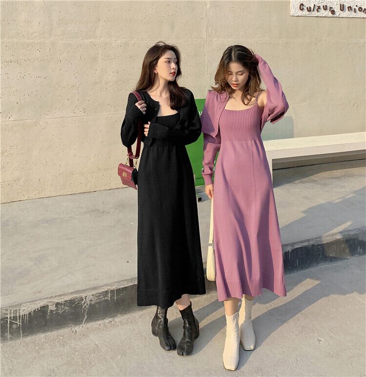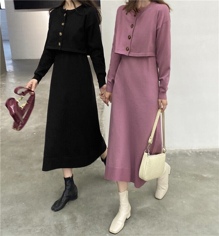 色:カーディガンブラック,カーディガンパープル,スカート黒,スリングスカートパープル