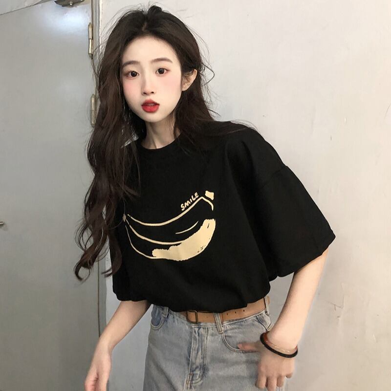 色:ホワイトシンプルバナナTシャツ,ブラックシンプルバナナTシャツ