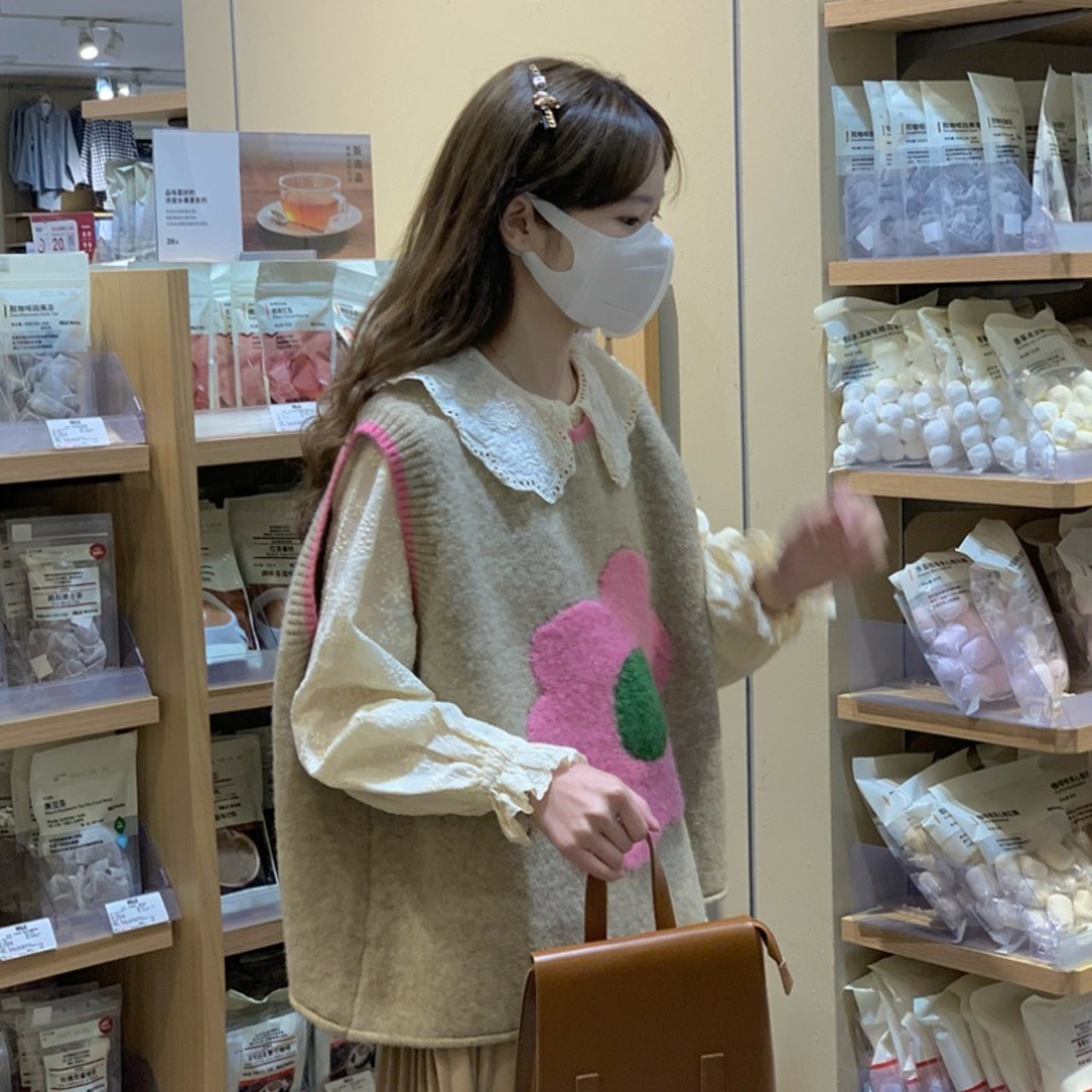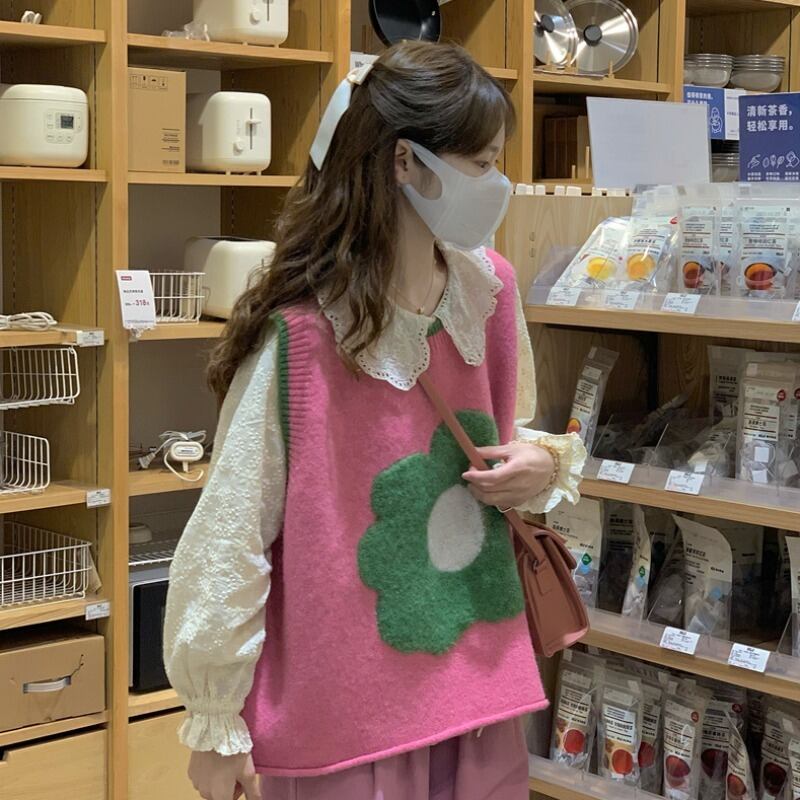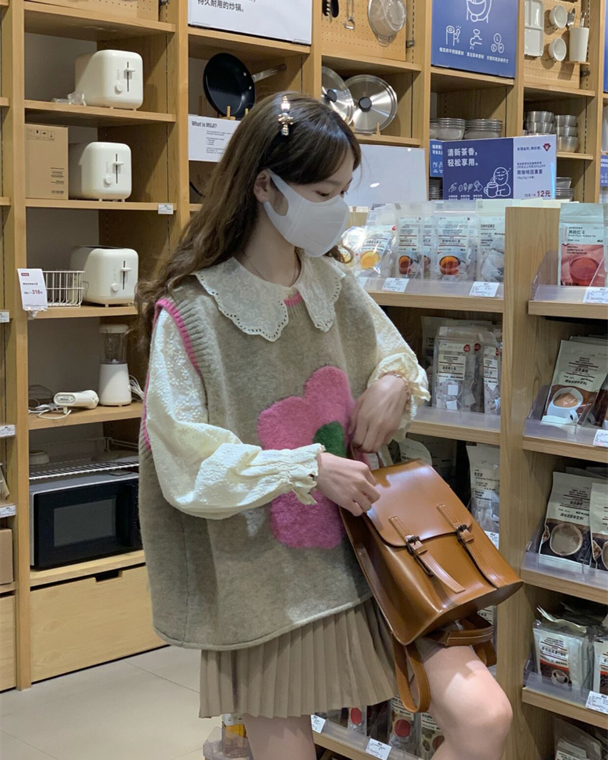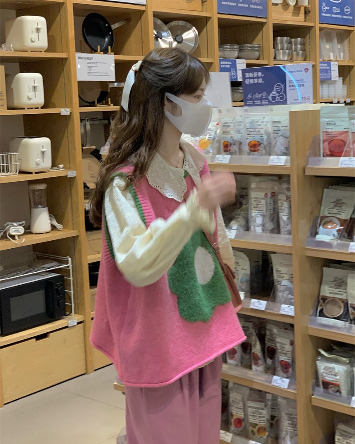 色:カーキフラワーベスト,ピンクの花のベスト,刺繍入りシャツ