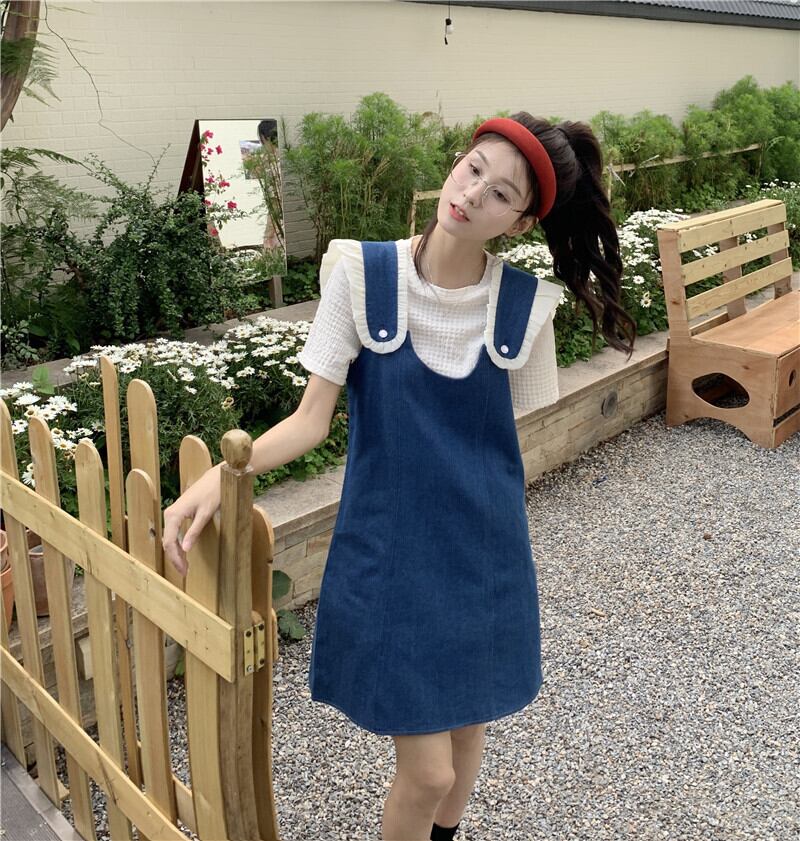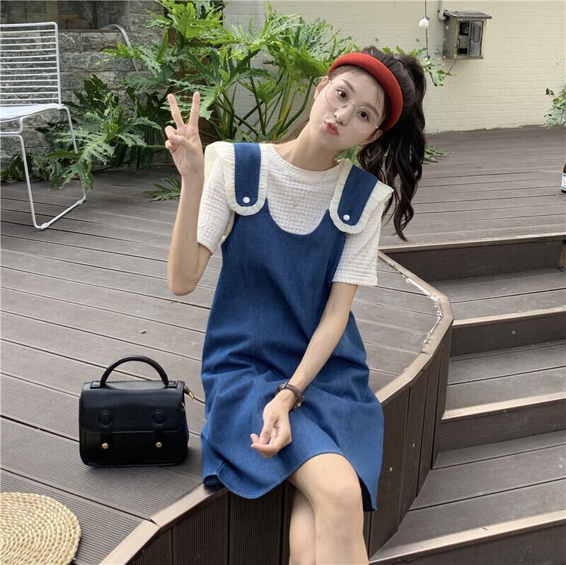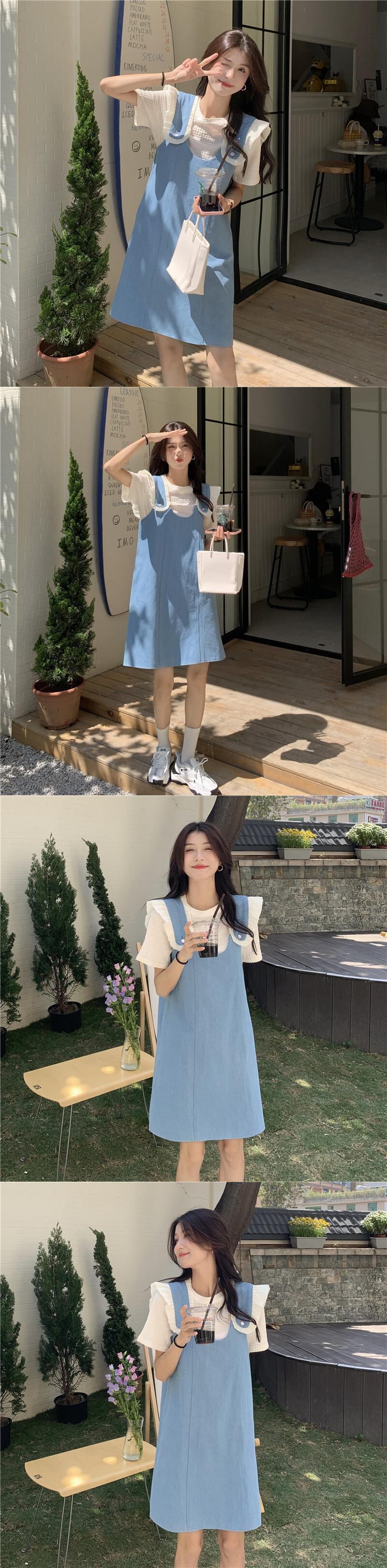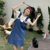 色:アプリコットパフTシャツ,ダークブルーのドレス,ライトブルーのドレス