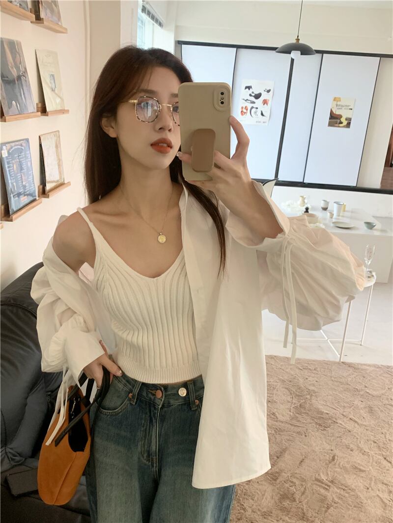 色:白のシャツ,ホワイトサスペンダー,青いシャツ,青いスリング