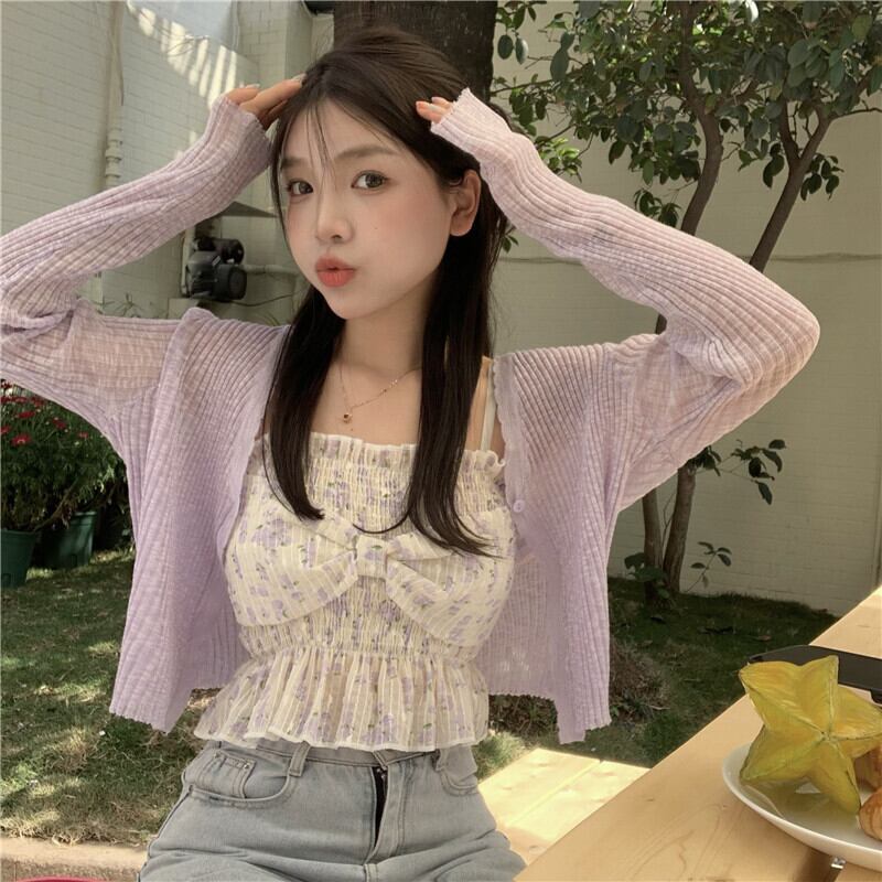 色:白いカーディガン,ピンクのサスペンダー,パープルカーディガン,紫のサスペンダー