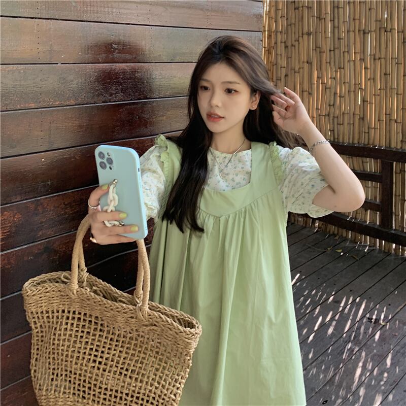 色:花柄シャツ,緑のスカート,アプリコットスカート